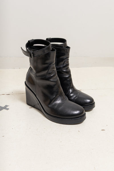 ANN DEMEULEMEESTER - FW09 Calf leather wedge boots with ankle straps