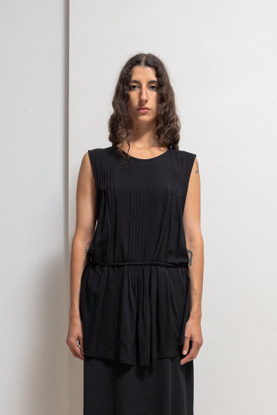 ANN DEMEULEMEESTER - Pleated rayon top with waist strap