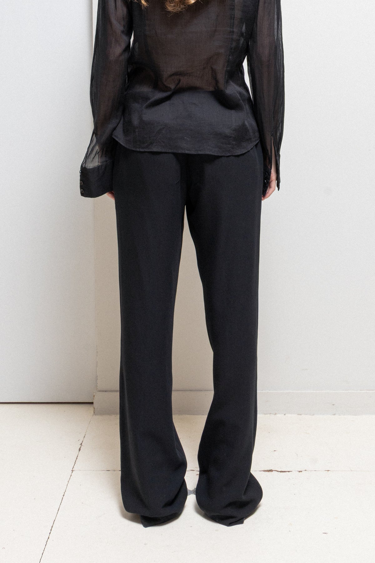 Beautiful pair of pants made of a lightweight fleece wool blend, featuring a classic four pocket construction as well as a hidden zipper and hook front closure. Wide straight cut.