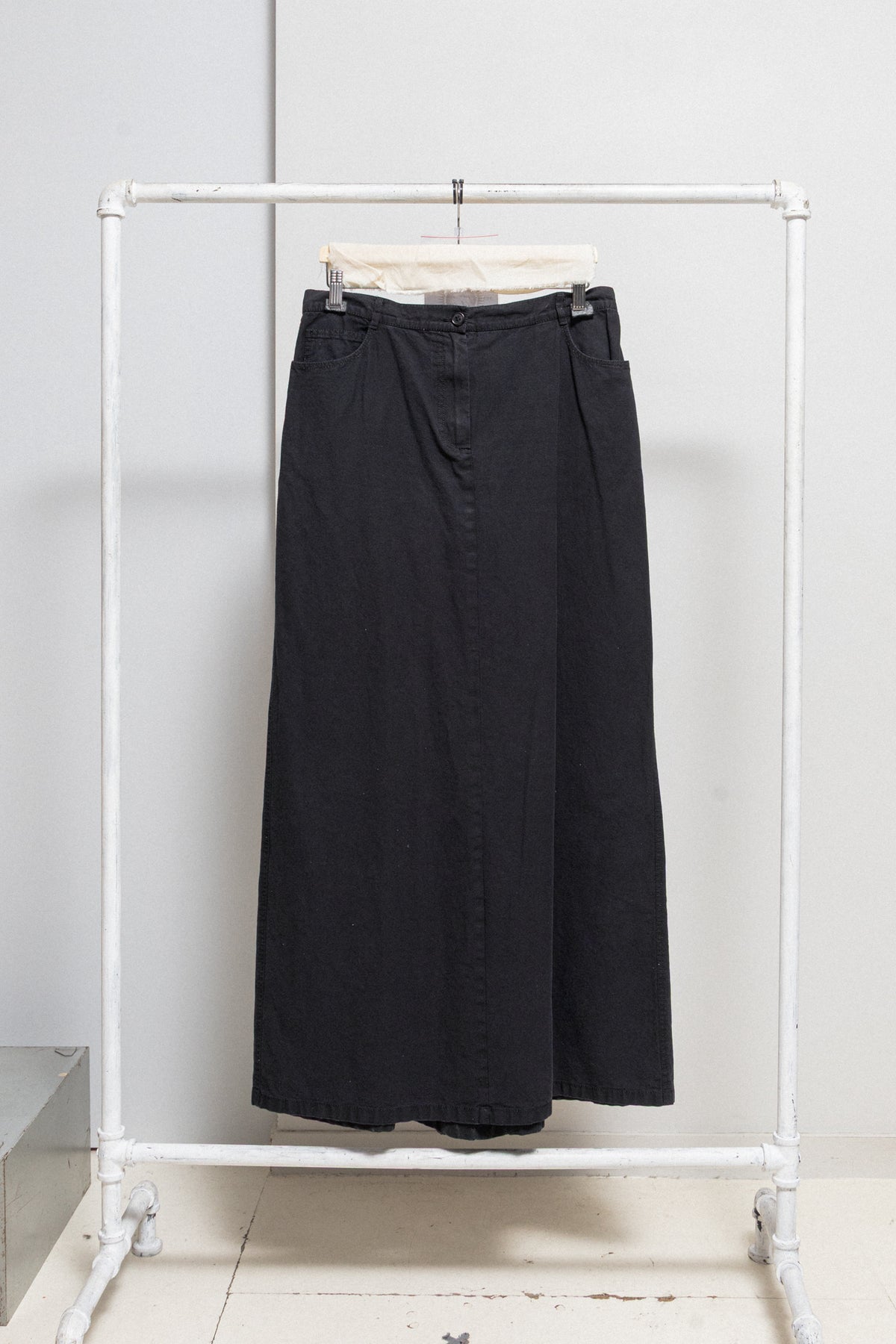 Beautiful long skirt made of cotton, featuring tiny glitter integrated all over the garment. Slightly flared cut with a pocket each side, back patch pockets, zipper and button closure and belt loops.
