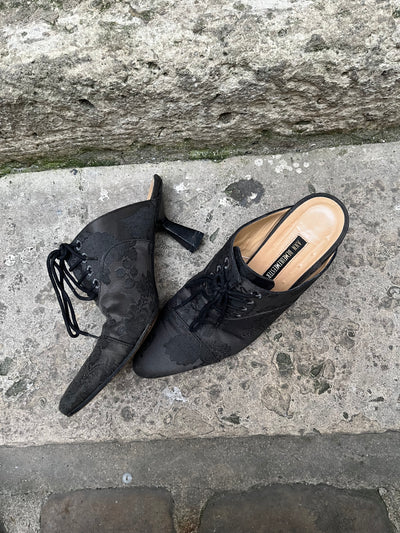 (New Arrival) ANN DEMEULEMEESTER - 1994 Pointy mules with satin floral pattern
