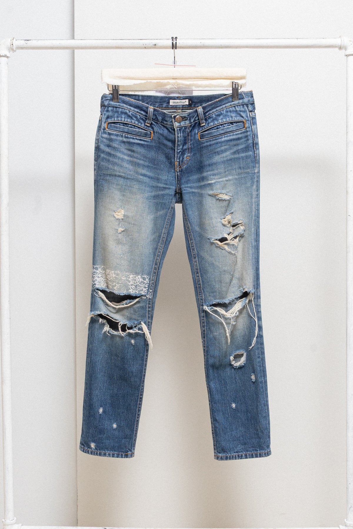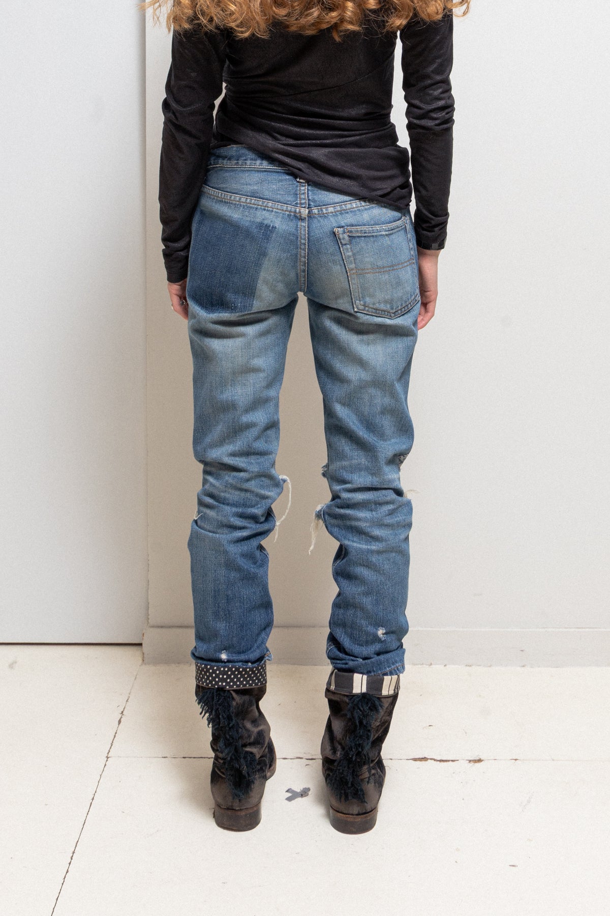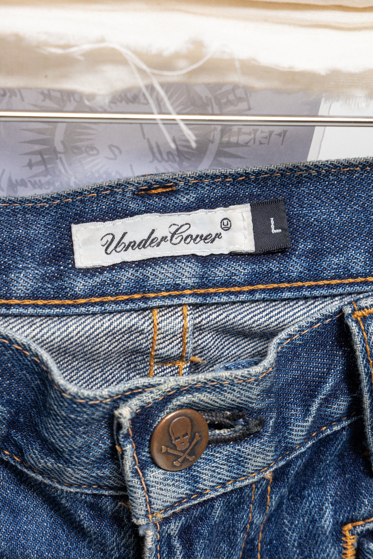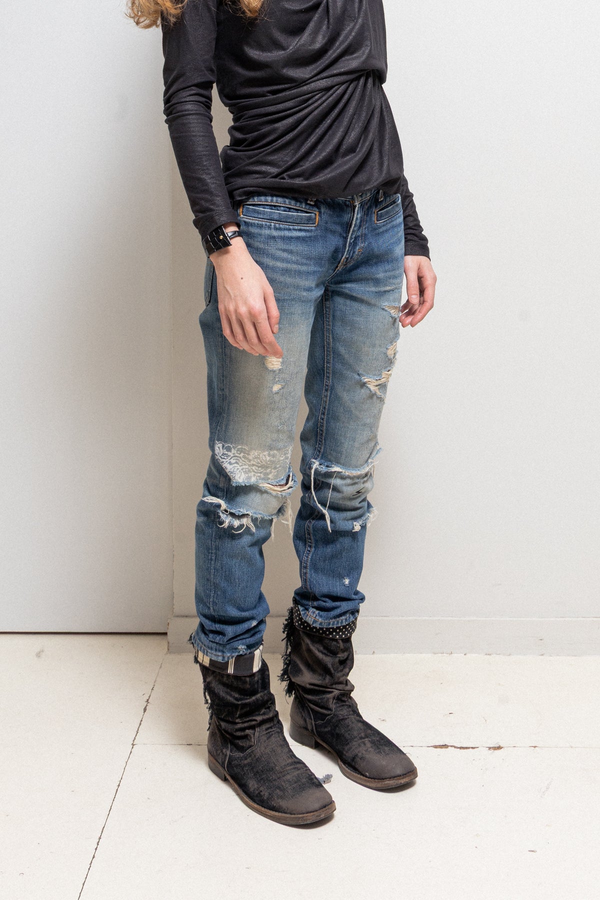 UNDERCOVER - FW04 « But Beautiful » Ripped jeans with lace print (runway)