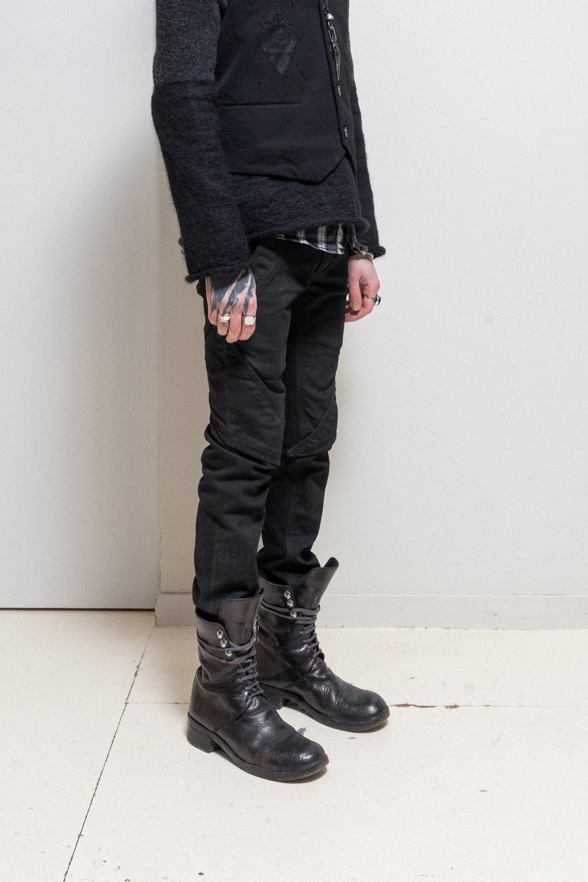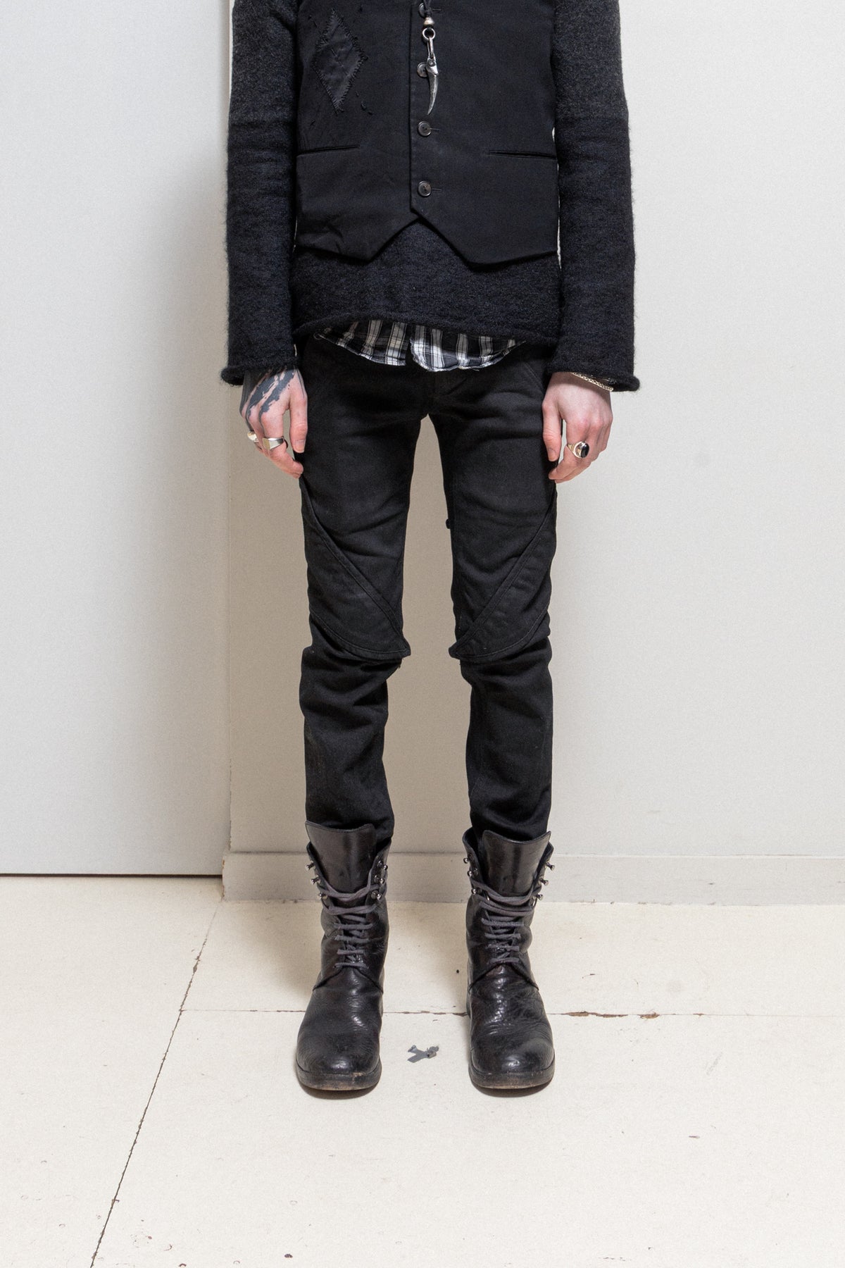 GARETH PUGH - 2010’s Waxed cotton slim pants with knee panels
