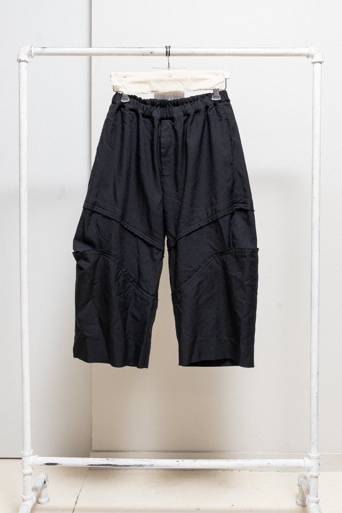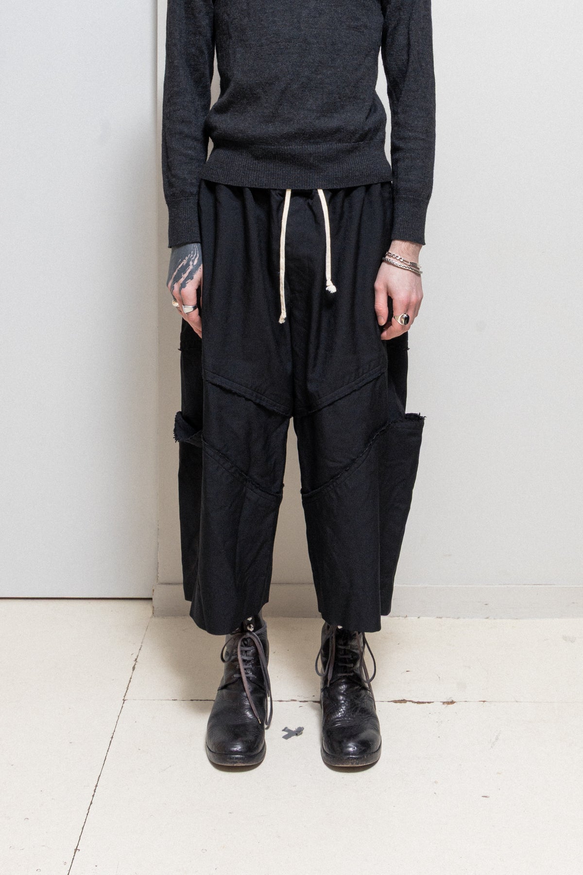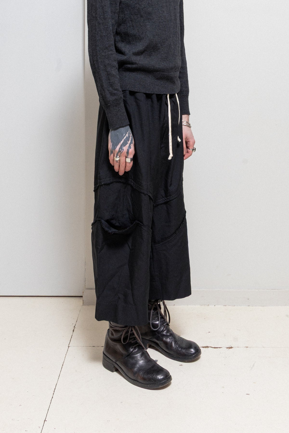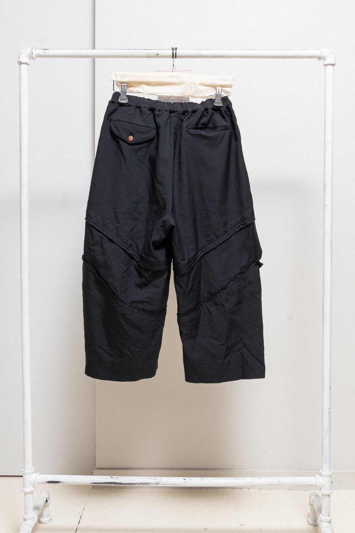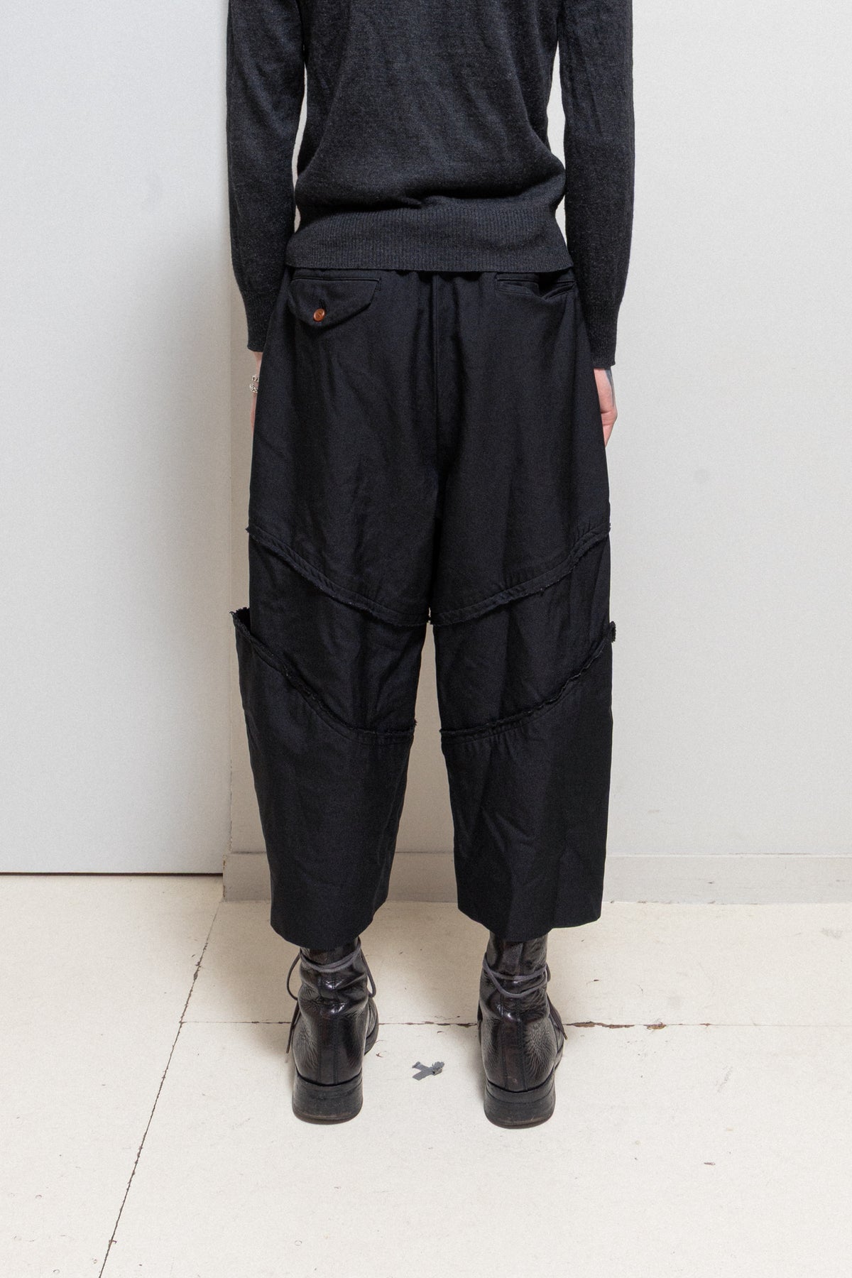 COMME DES GARÇONS BLACK - 2022 Wide poly pants with frayed seams and side volumes