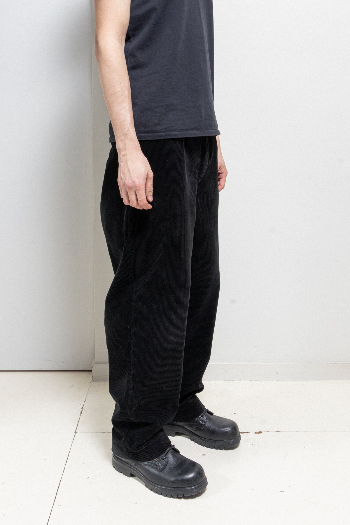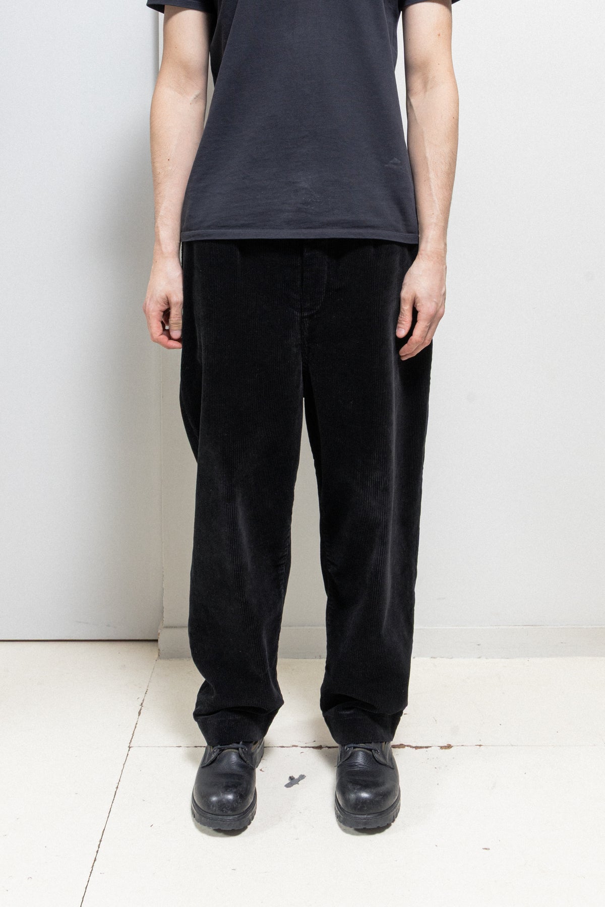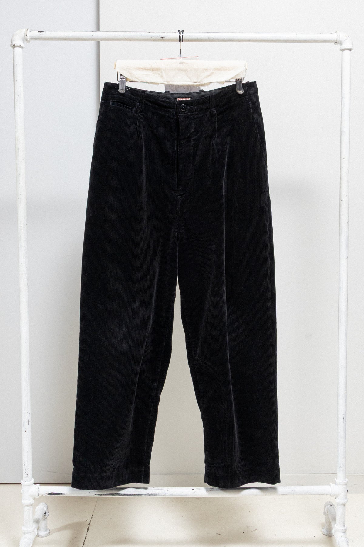 Amazing pair of wide pants made of a soft velvety cotton corduroy, featuring front pleats and italian pockets as well as back piped pockets and a middle back strap with adjustable metal buckle. Front closure with three buttons including two invisible. Belt loops. Back darts.