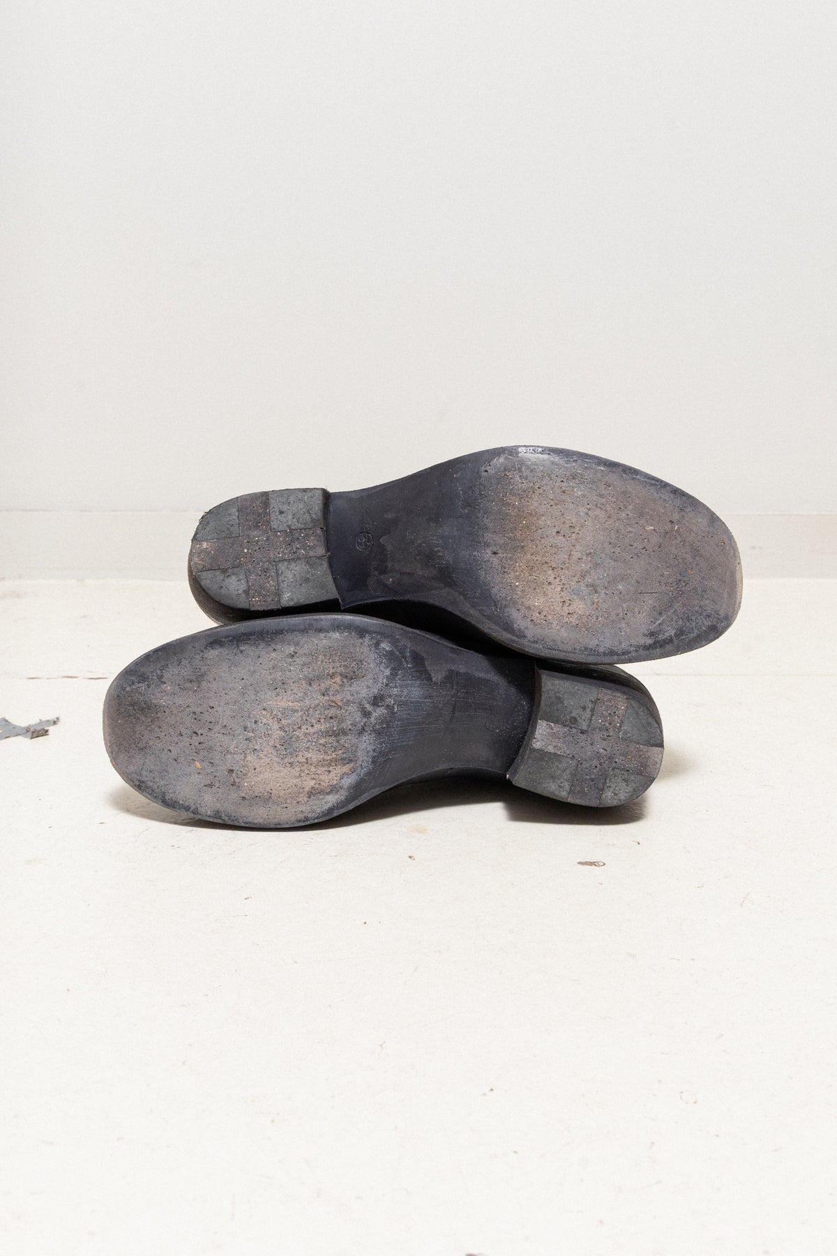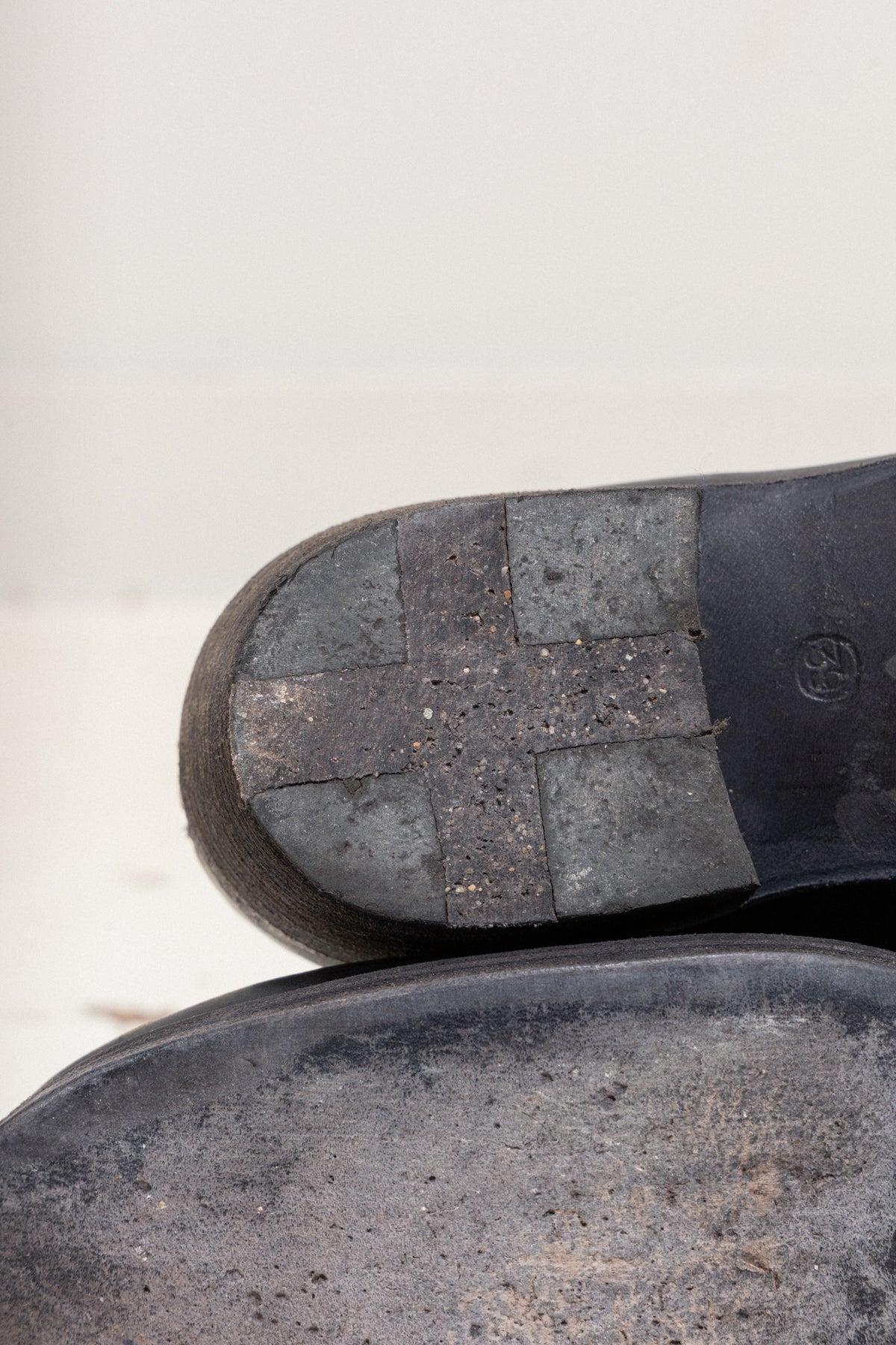 Sublime black leather boots made of a soft and smooth horse skin, featuring a medium 4cm heel with a rounded shape.