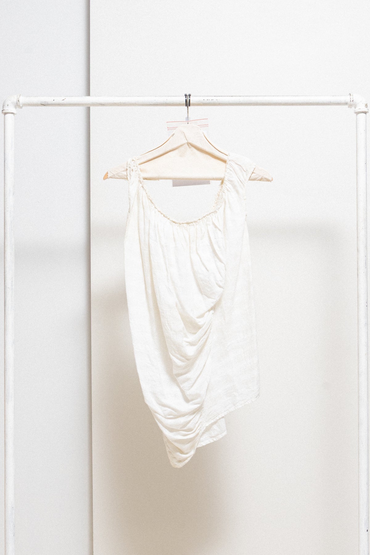 Incredible cream sleeveless top made of a soft and lightweight cotton fabric,
