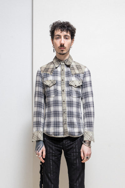 ISAMU KATAYAMA BACKLASH - Checkered flannel with brass buttons and pig skin details