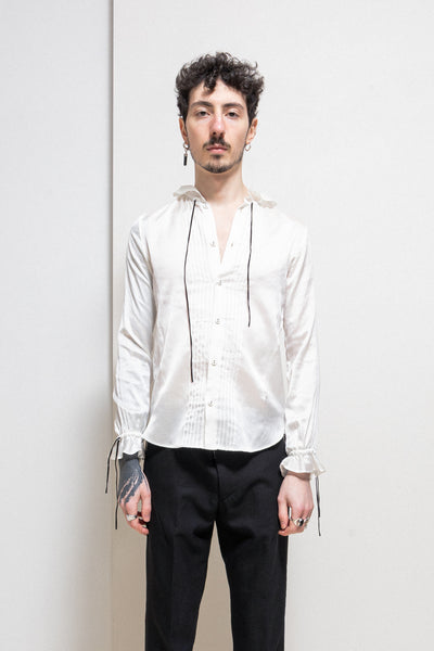 NUMBER (N)INE - FW07 « Love God Murder » Cotton blend pleated shirt with strap details (runway)