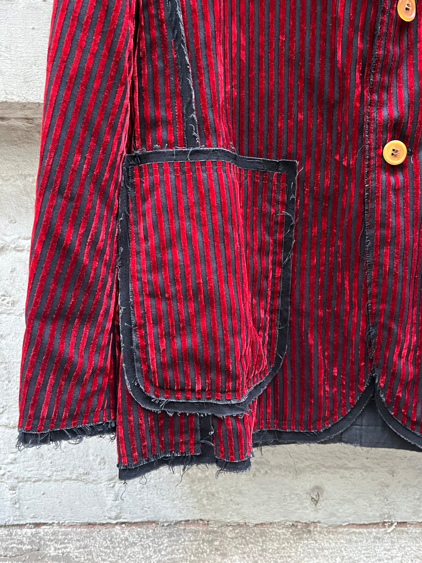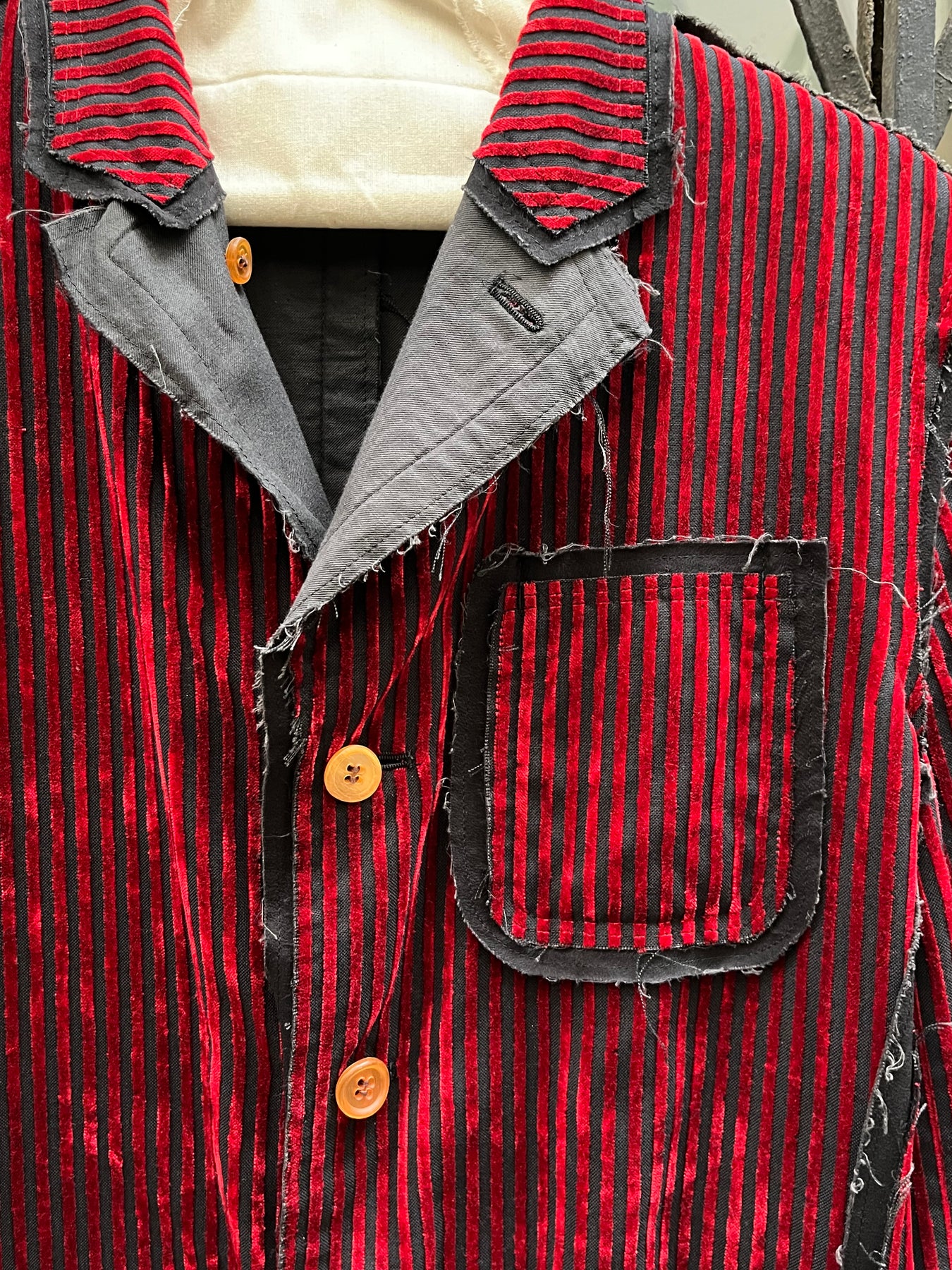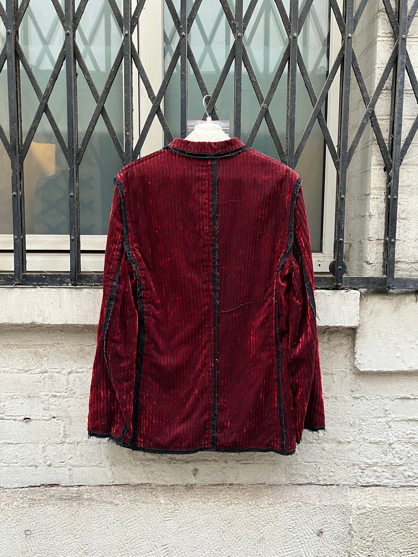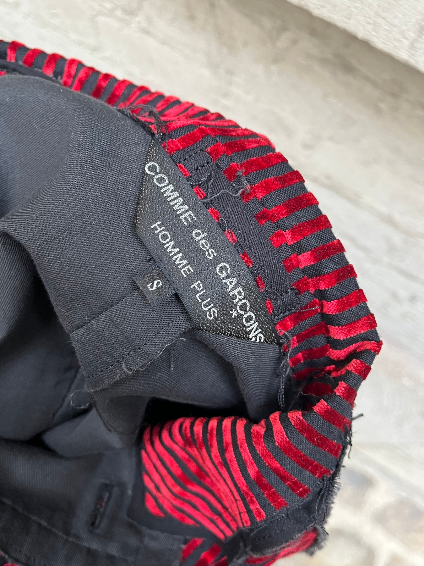 (New Arrival) COMME DES GARÇONS HOMME PLUS - FW02 « Black » Button up black jacket with red velvet stripes