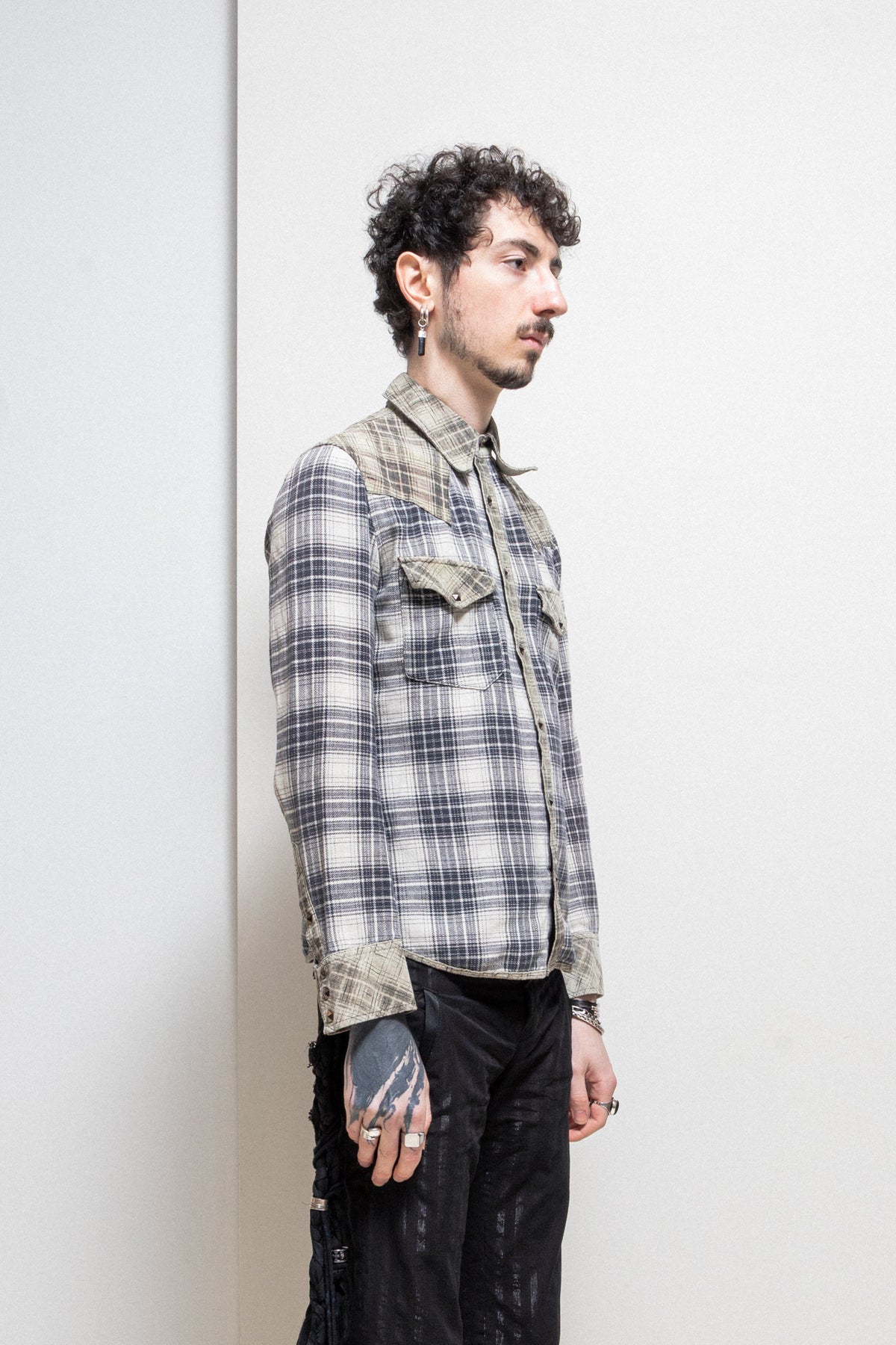ISAMU KATAYAMA BACKLASH - Checkered flannel with brass buttons and pig skin details