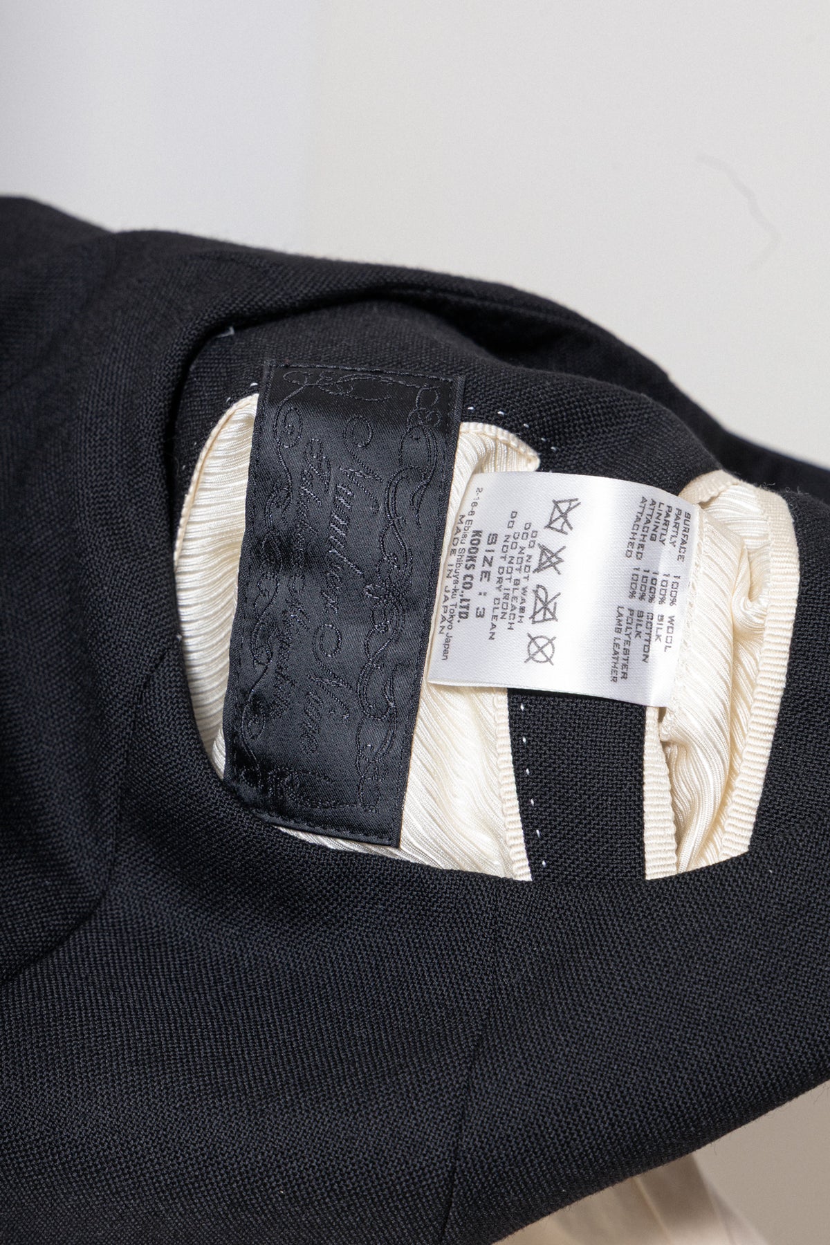 Beautiful waistcoat made of a thin wool, featuring contrasting cream closure buttons at front , welt pocket piping and back buttoned straps. Regular cut with back curved structuring darts and same cream silk lining.
