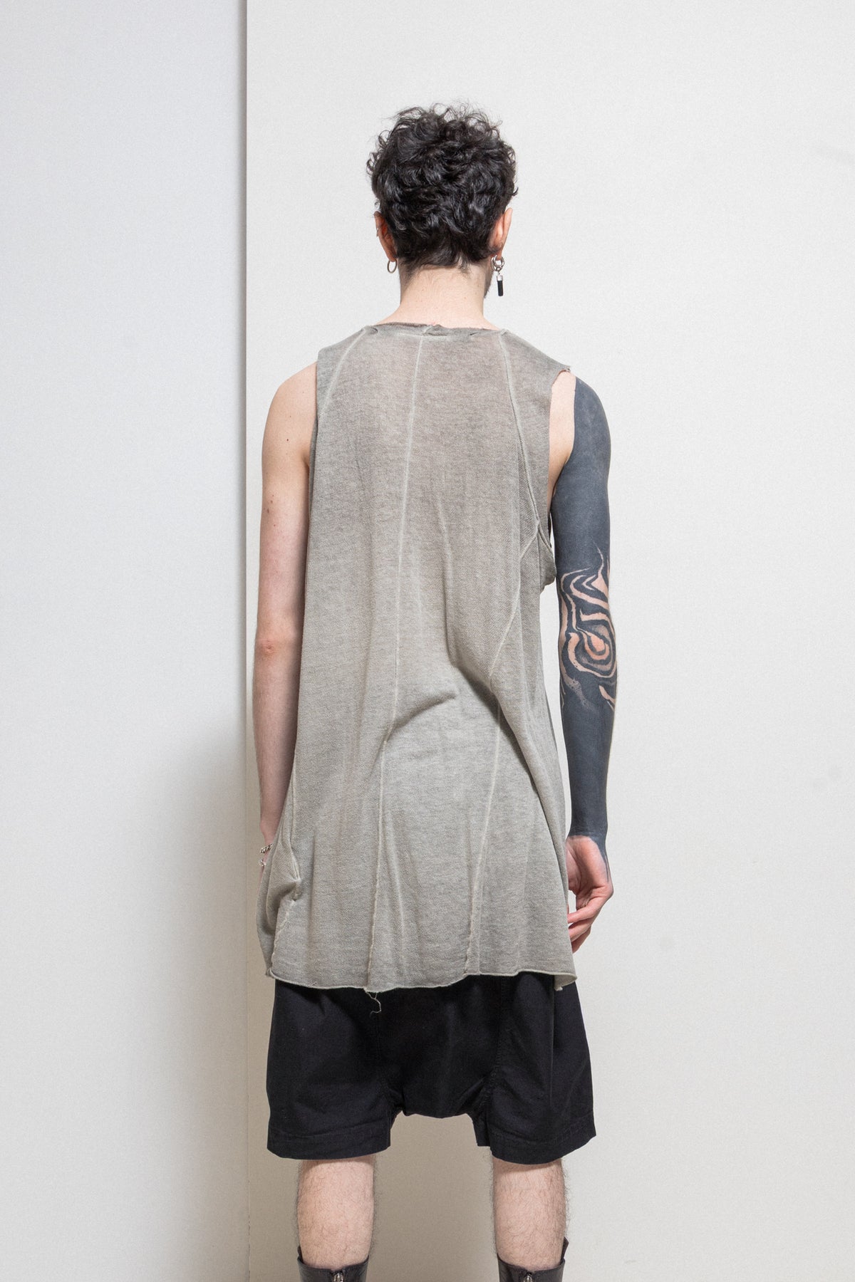 Nice tank top made of soft and thin cotton silk blend, featuring detailed geometrical pattern seams at front and back.