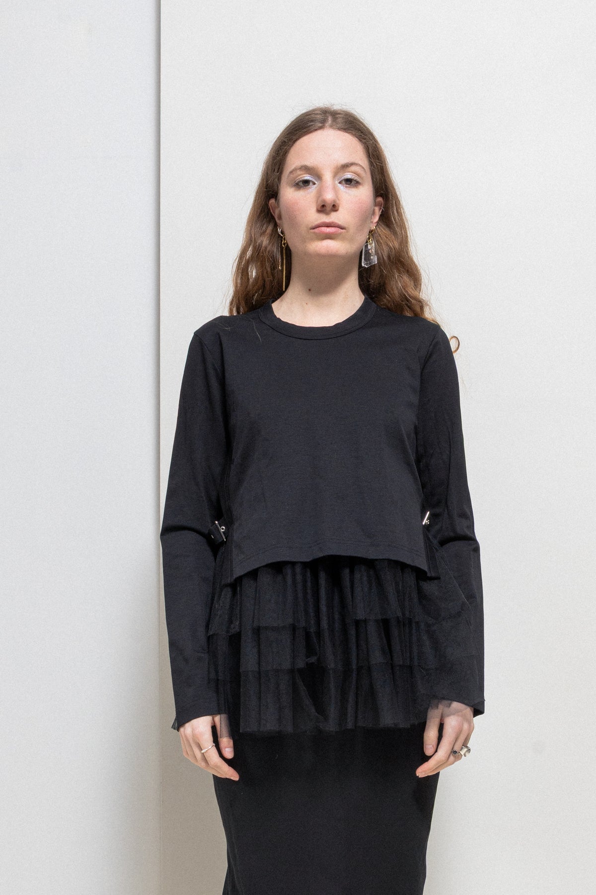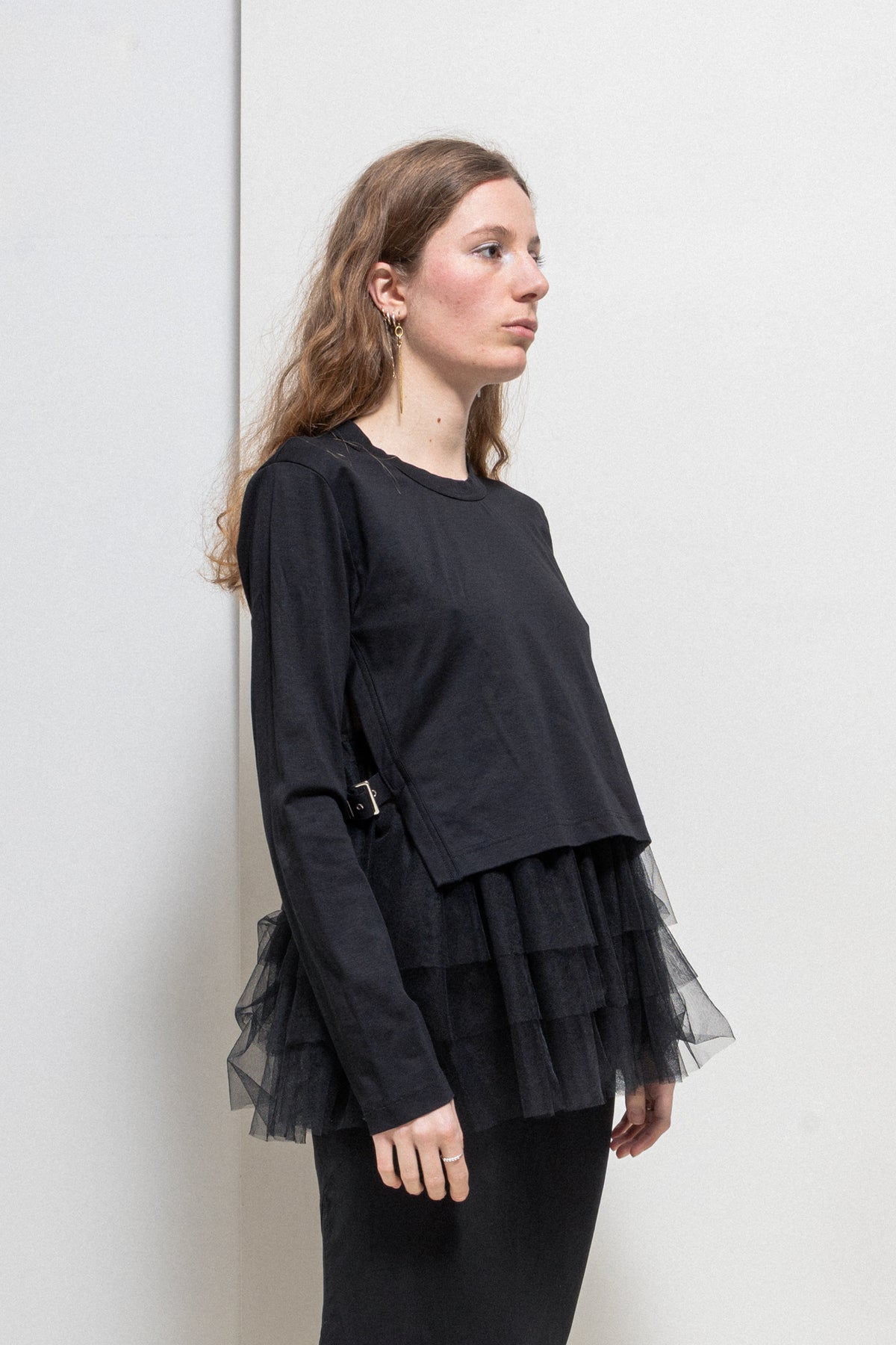 NOIR KEI NINOMIYA - Cotton top with tulle layers and side buckles
