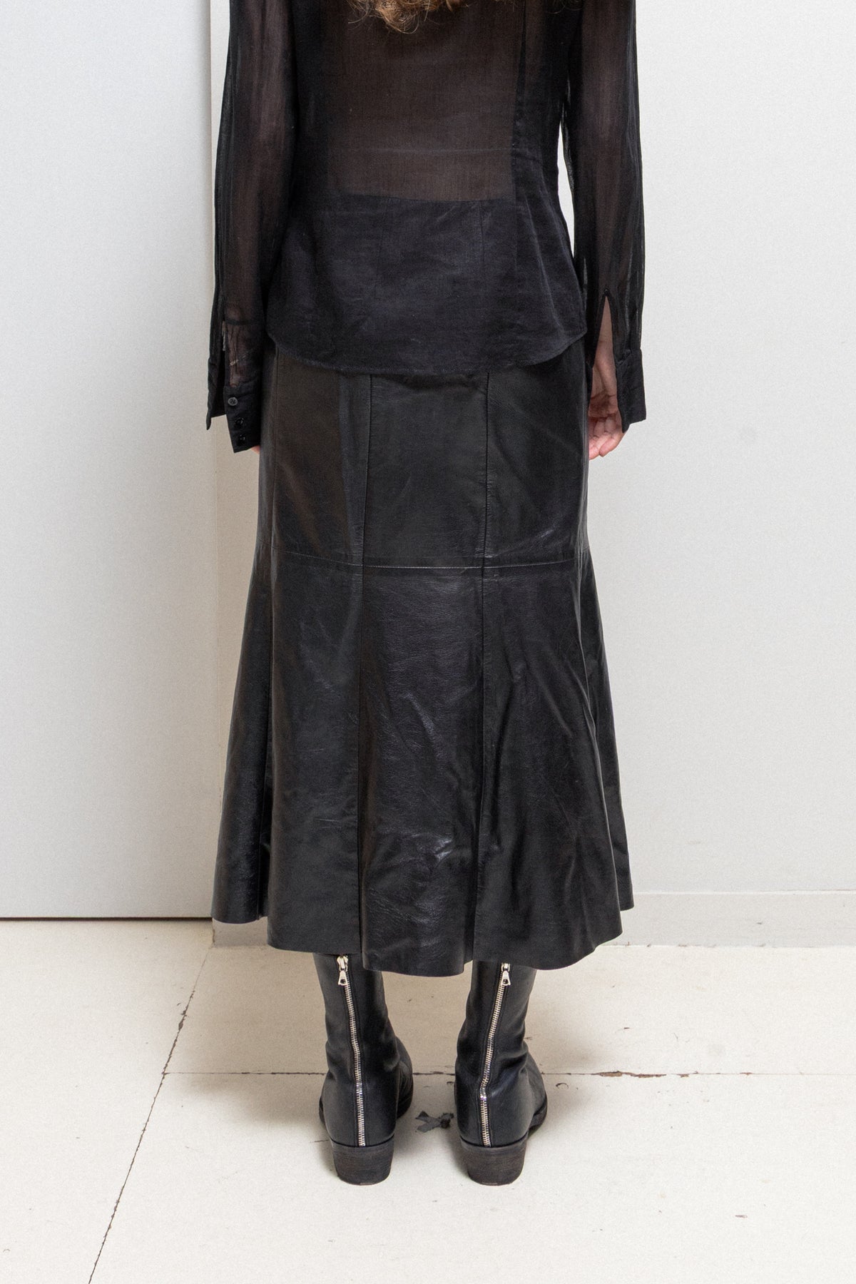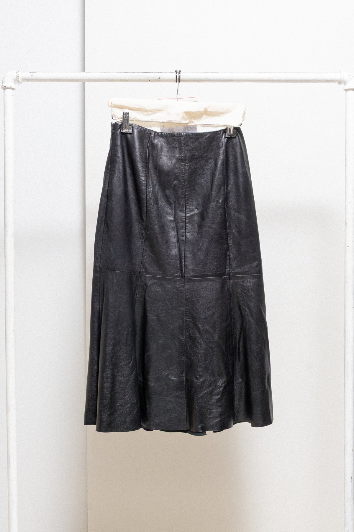 Amazing skirt made of a soft and supple leather with a beautiful shine, featuring waist darts and nice bottom pleats. Fully lined.