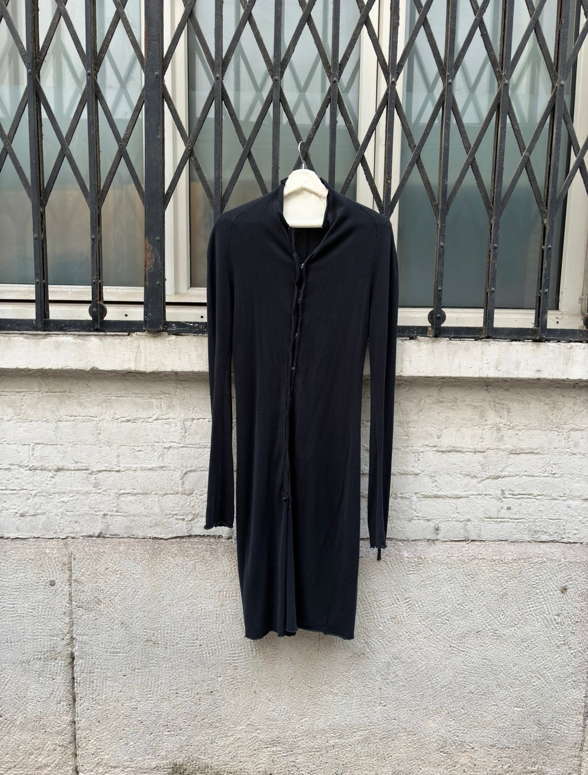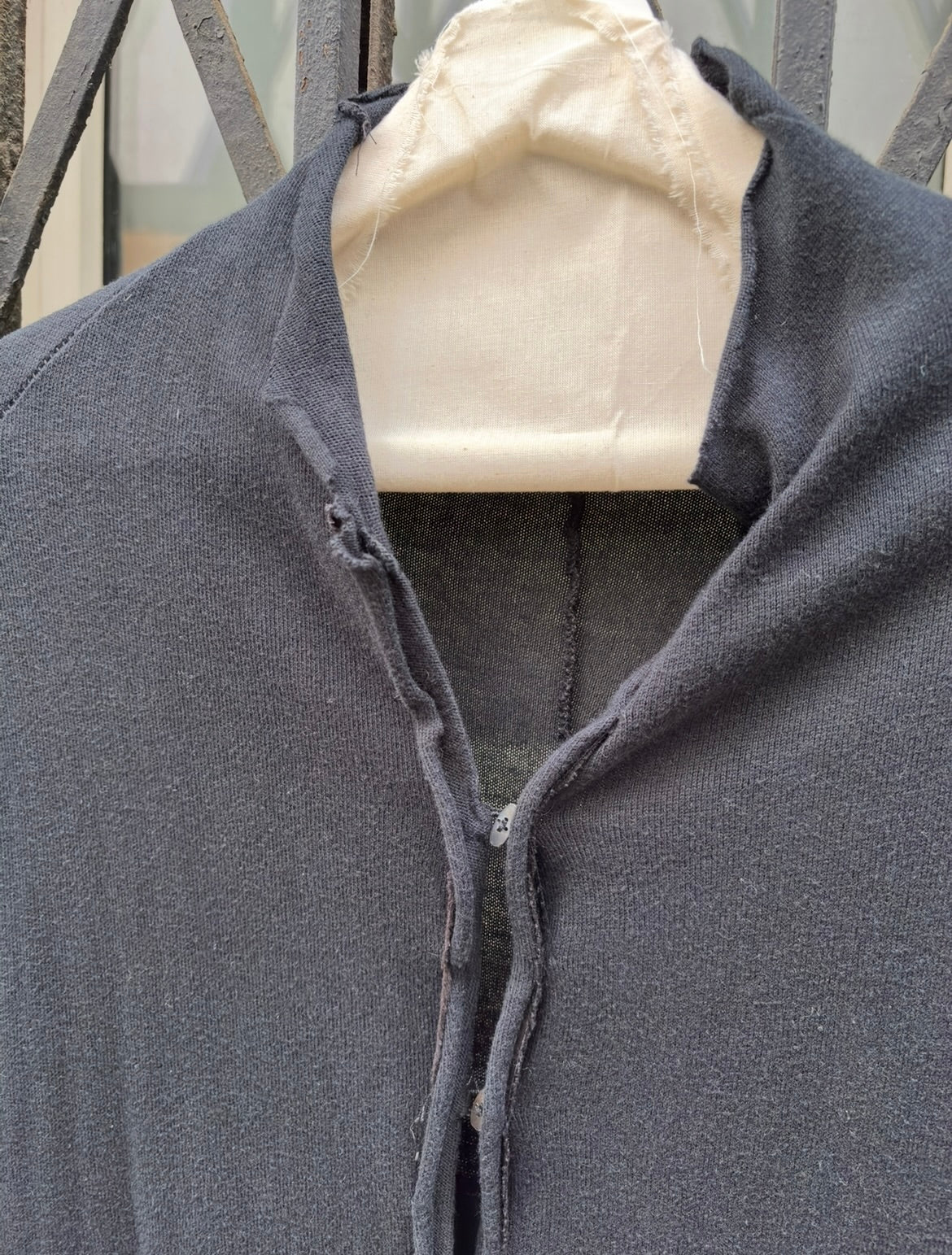 (New Arrival) MA+ - Elongated raw cut cotton cardigan with silver buttons