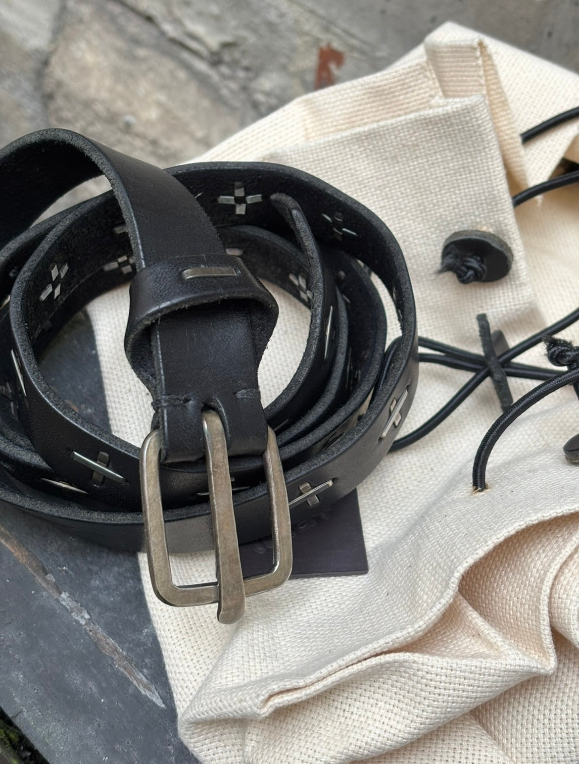 (New Arrival) MA+ - Q buckle cross staple cow leather belt
