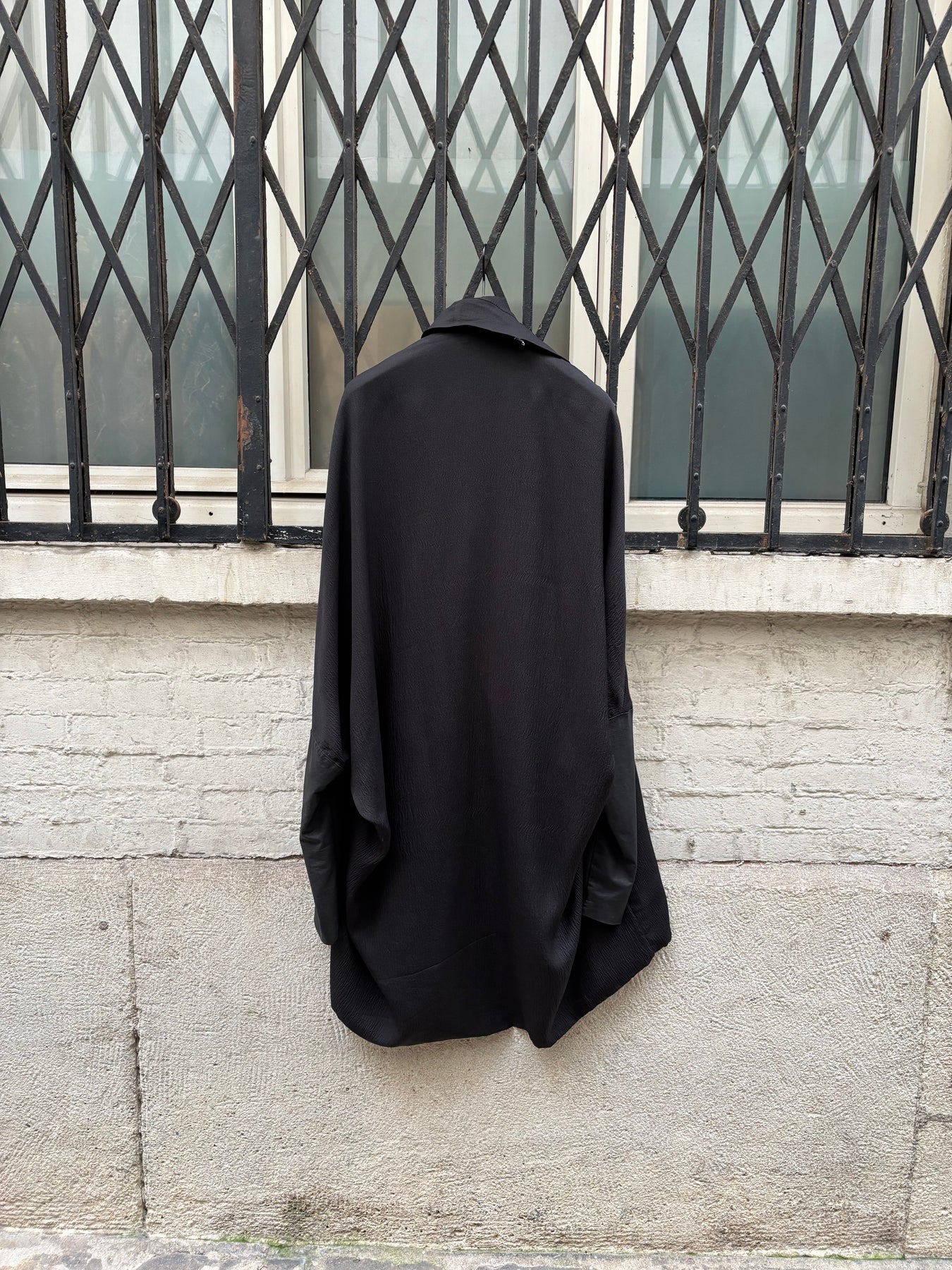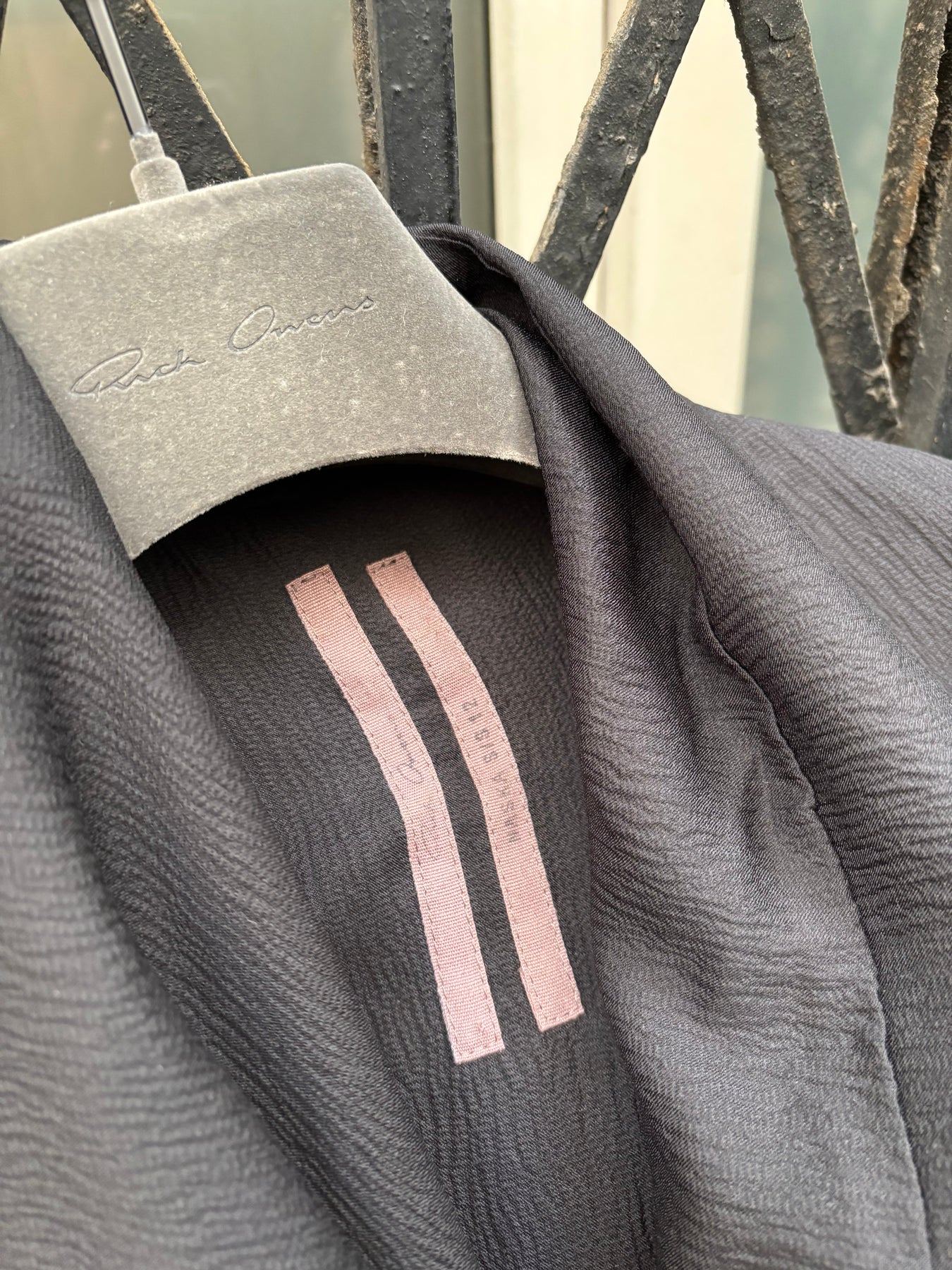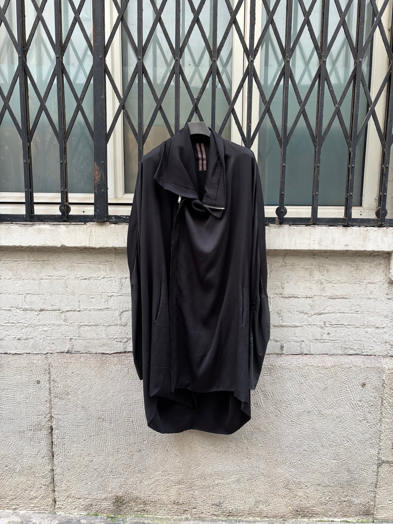 (New Arrival) RICK OWENS - SS12 "NASKA" Textured silk light coat with calf leather sleeves