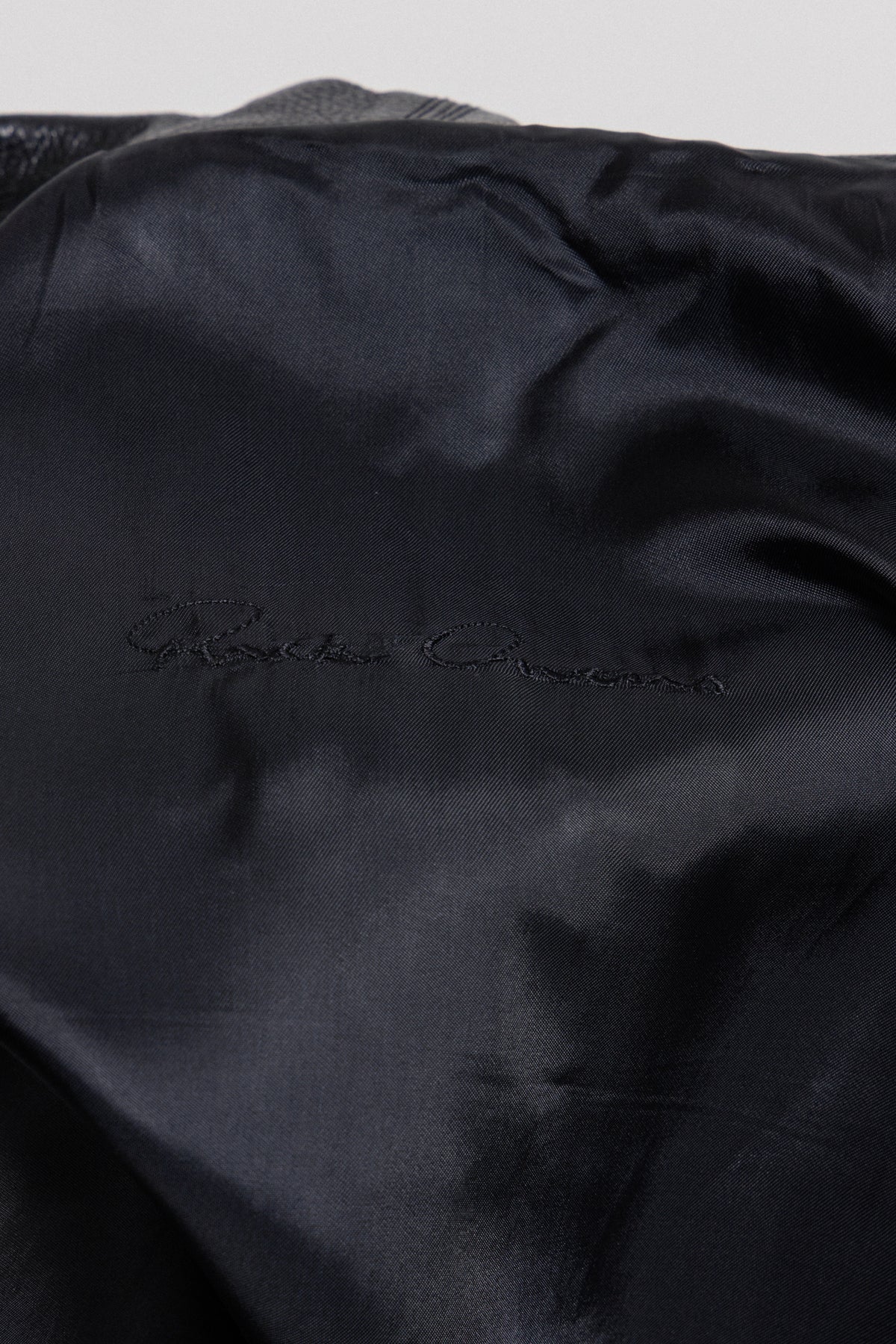 RICK OWENS - FW10 "GLEAM" Boxed calf leather jacket with wool bottom panels and collar tail (runway)