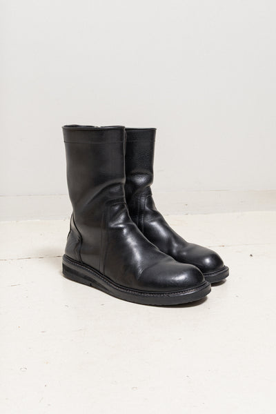 RICK OWENS - FW09 « CRUST » Leather wedge boots with triangular back volume (runway)