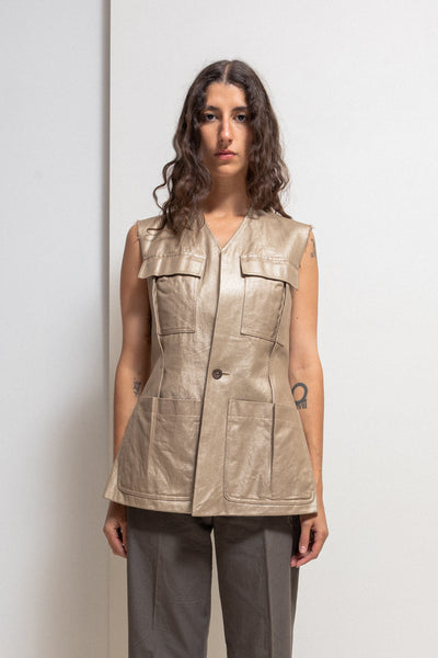 RICK OWENS - SS04 "CITROEN" Golden cotton military vest with silk draped back (runway)