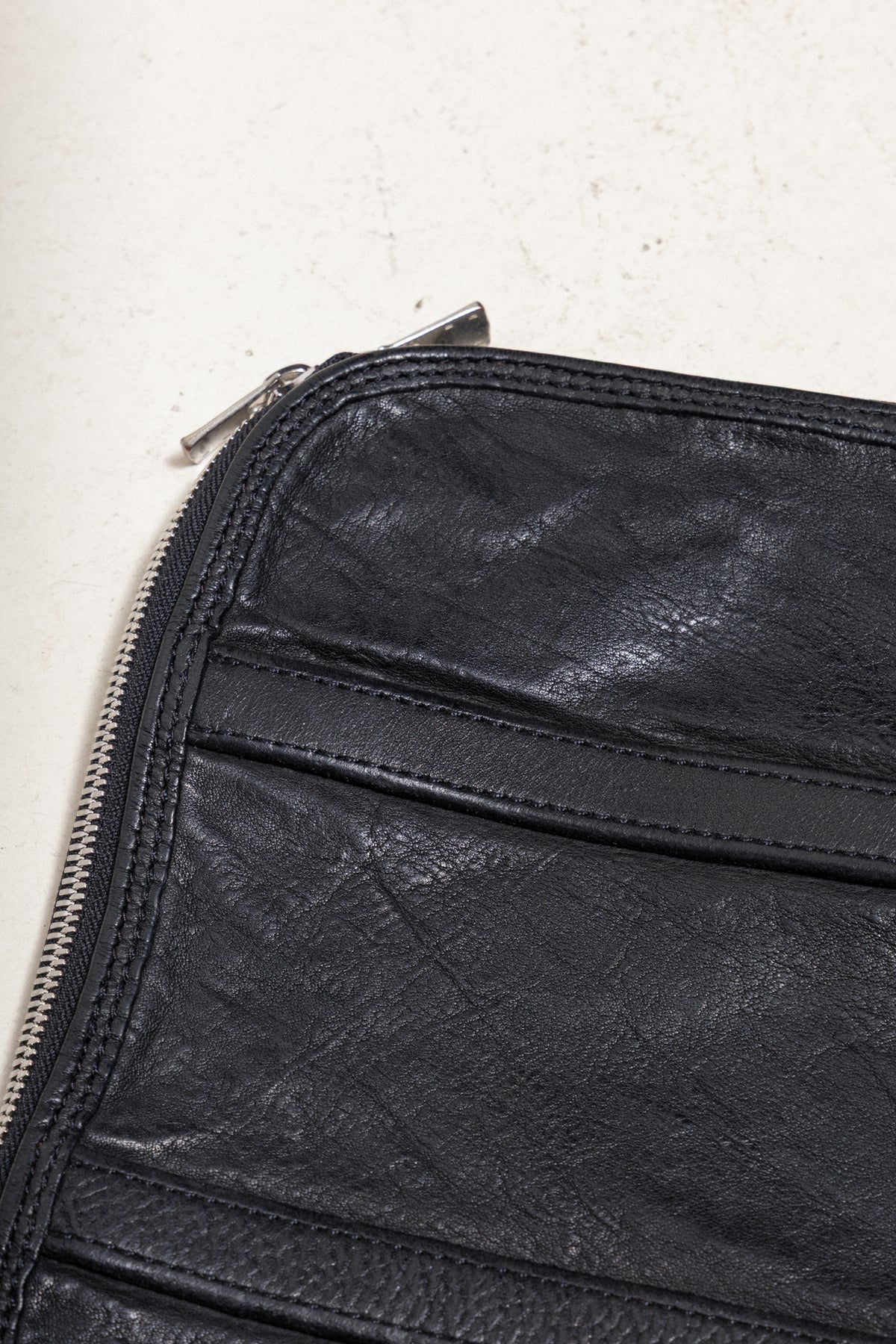 Beautiful clutch bag made of a very supple horse leather with a beautiful patina, featuring rounded corners and zippers going from corner to corner. Can be used as a pouch, small bag, big wallet or storage.