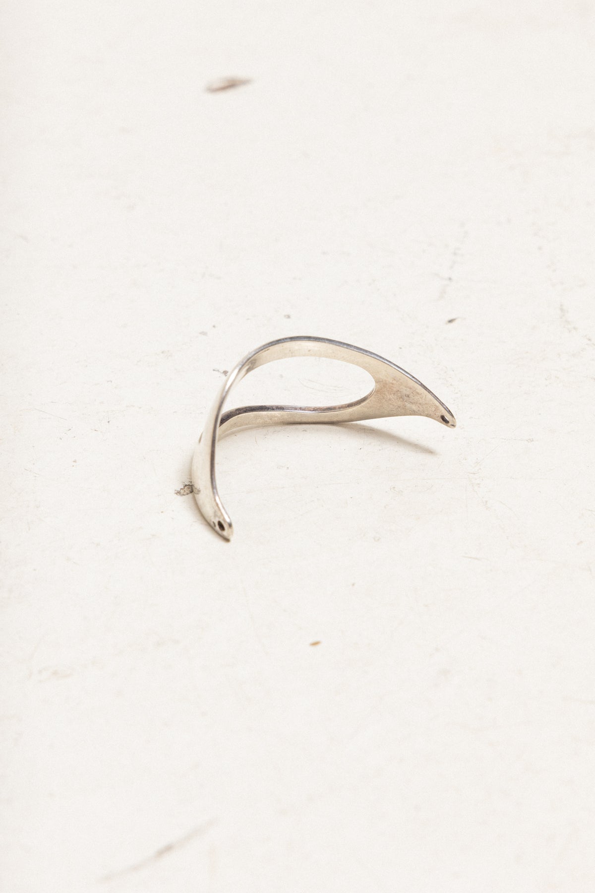 Beautiful bracelet made of 925 silver with a middle cutout to delicately accentuate a wrist bone. Features small holes to pair with any attachment of choice.