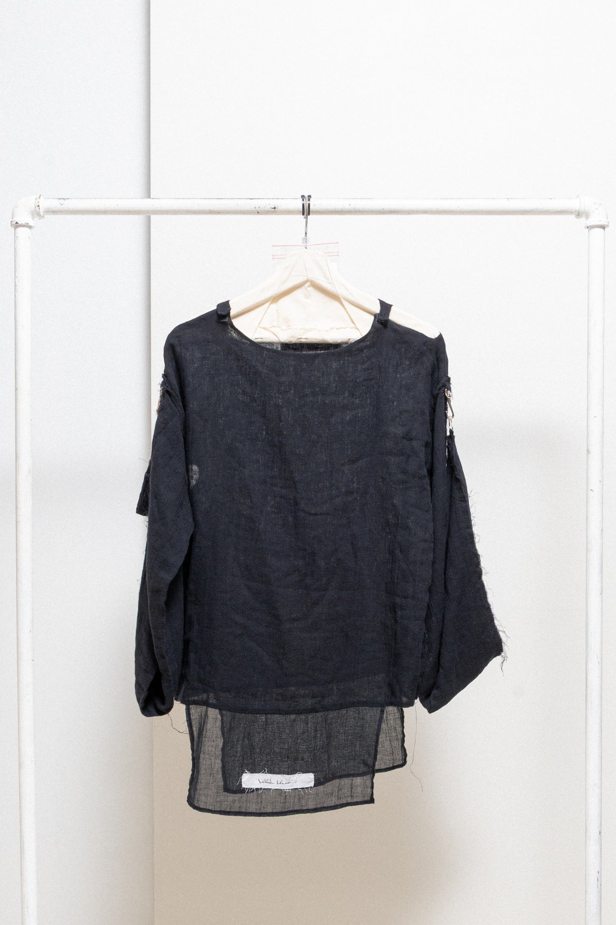 Amazing top in the style of Seditionaries printed muslins, made of an extra thin and soft cotton gauze, featuring elongated sleeves that can be attached thanks to hooks, as well as underarms slits allowing to wear it without putting arms on sleeves. Longer front and back creating a bum/crotch flap. Velcro straps on shoulders. Oversized cut.