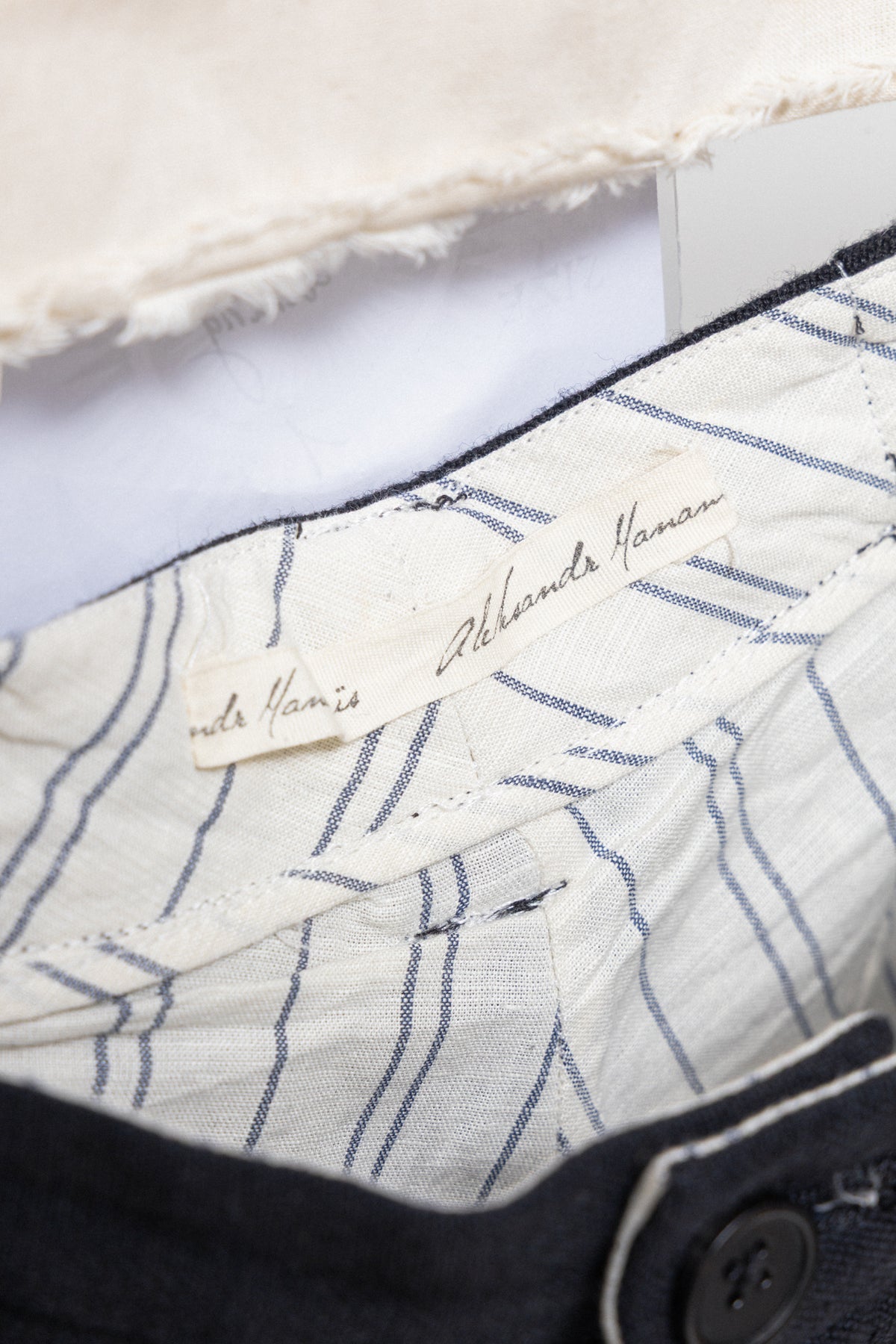 ALEKSANDR MANAMIS - Wool, cotton and linen pants with striped lining