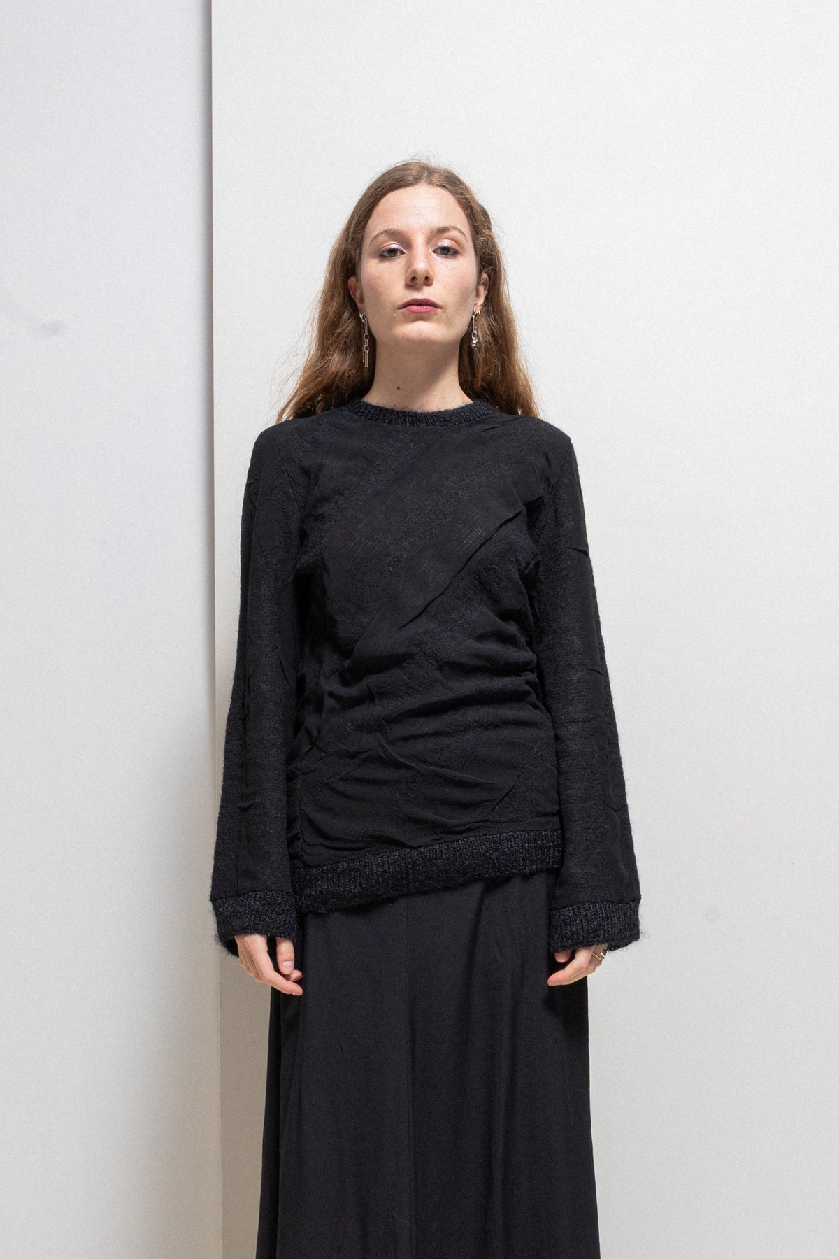 Incredible black double layered knitted sweater made of blended mohair wool and sheer fabrics,
