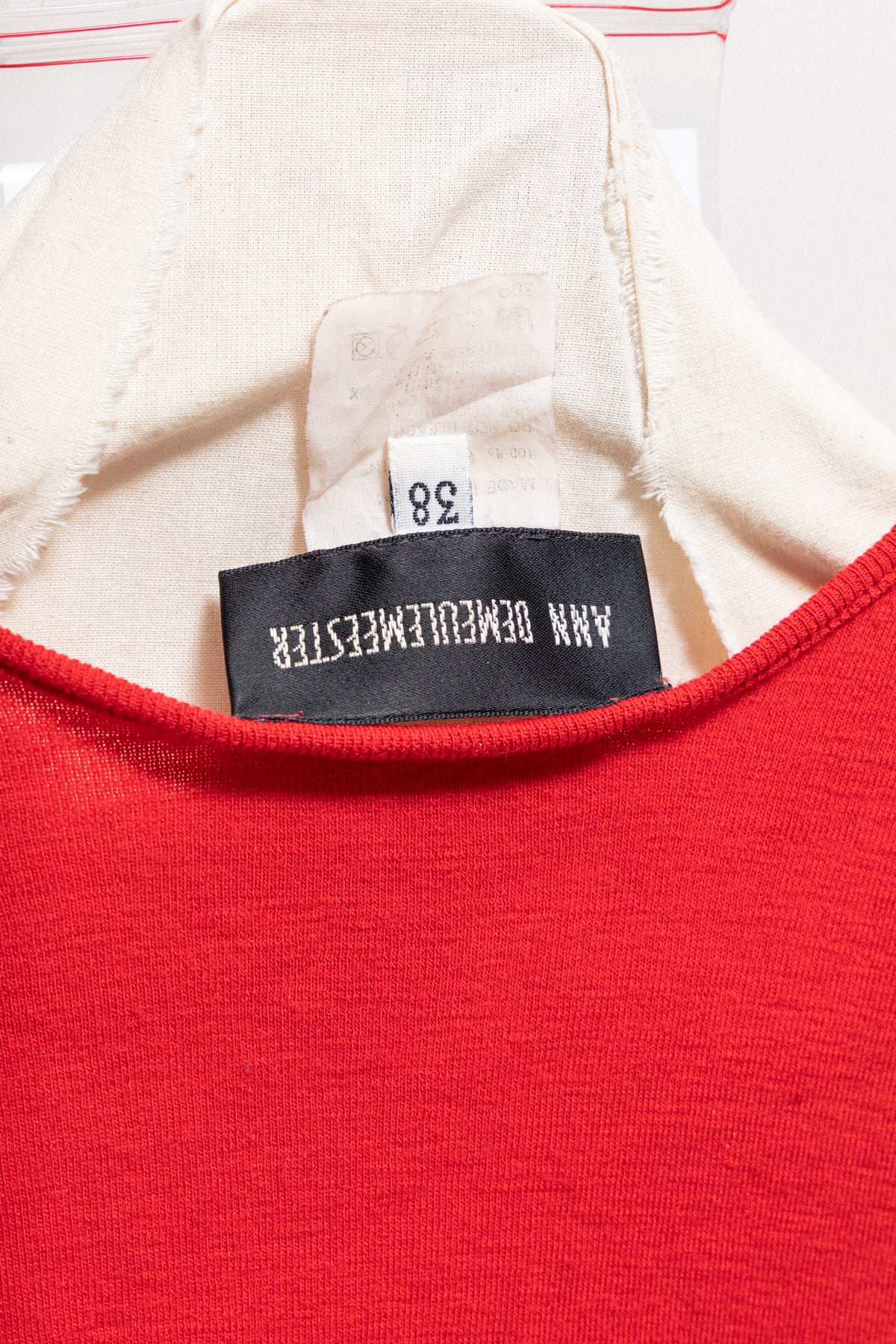 ANN DEMEULEMEESTER - FW96 Red wool top with v neck going sideward