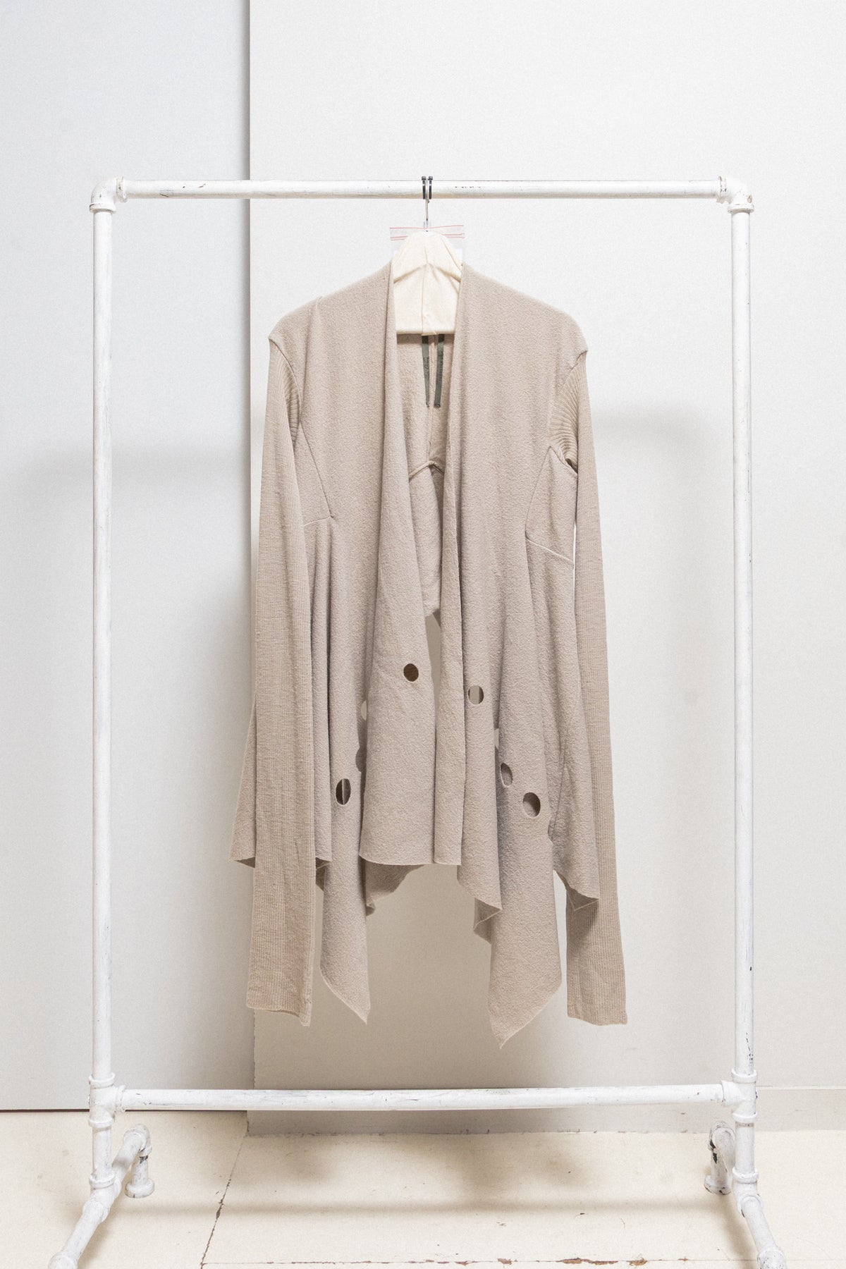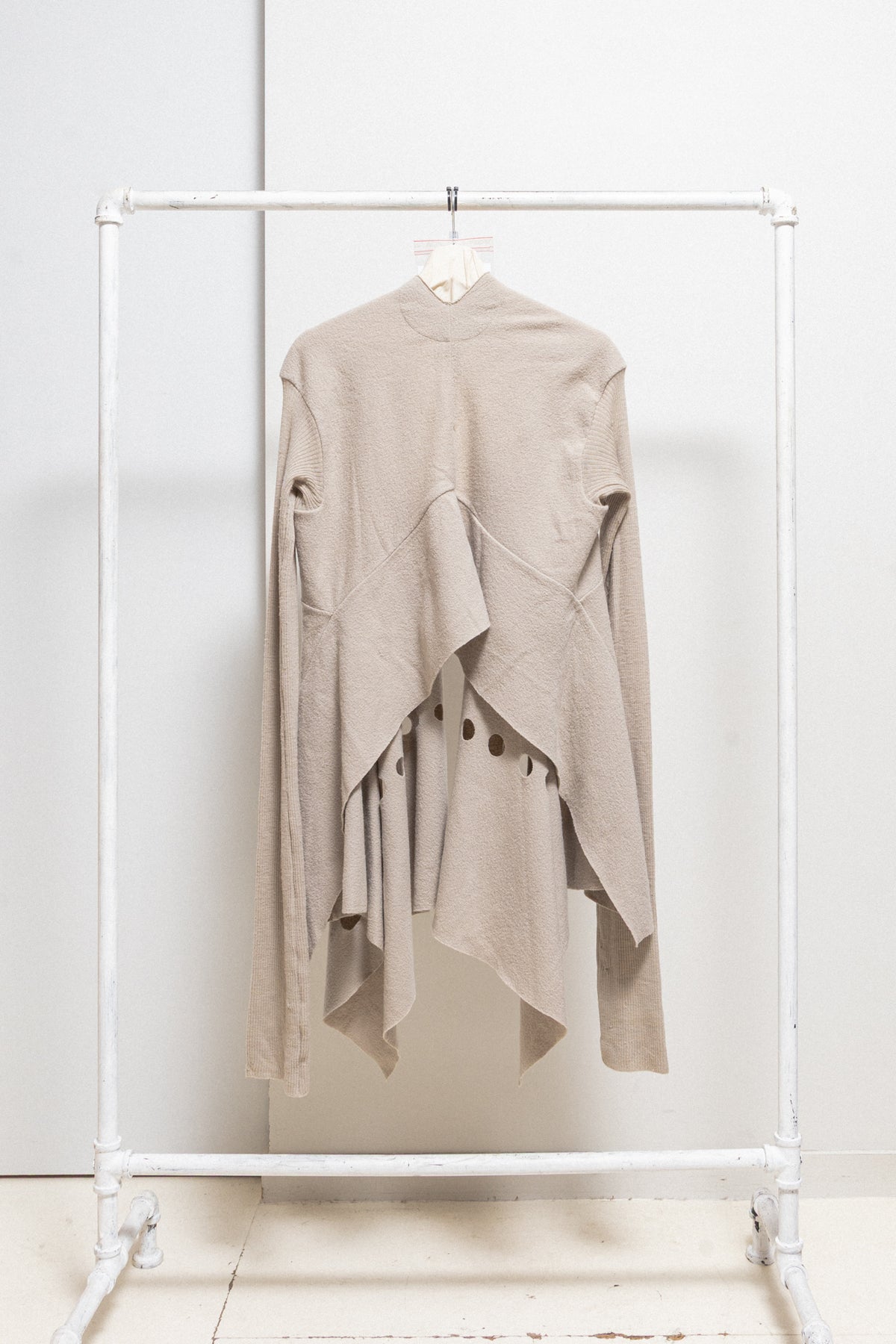 couples with extra long slim sleeves made of a knitted ribbed fabric.