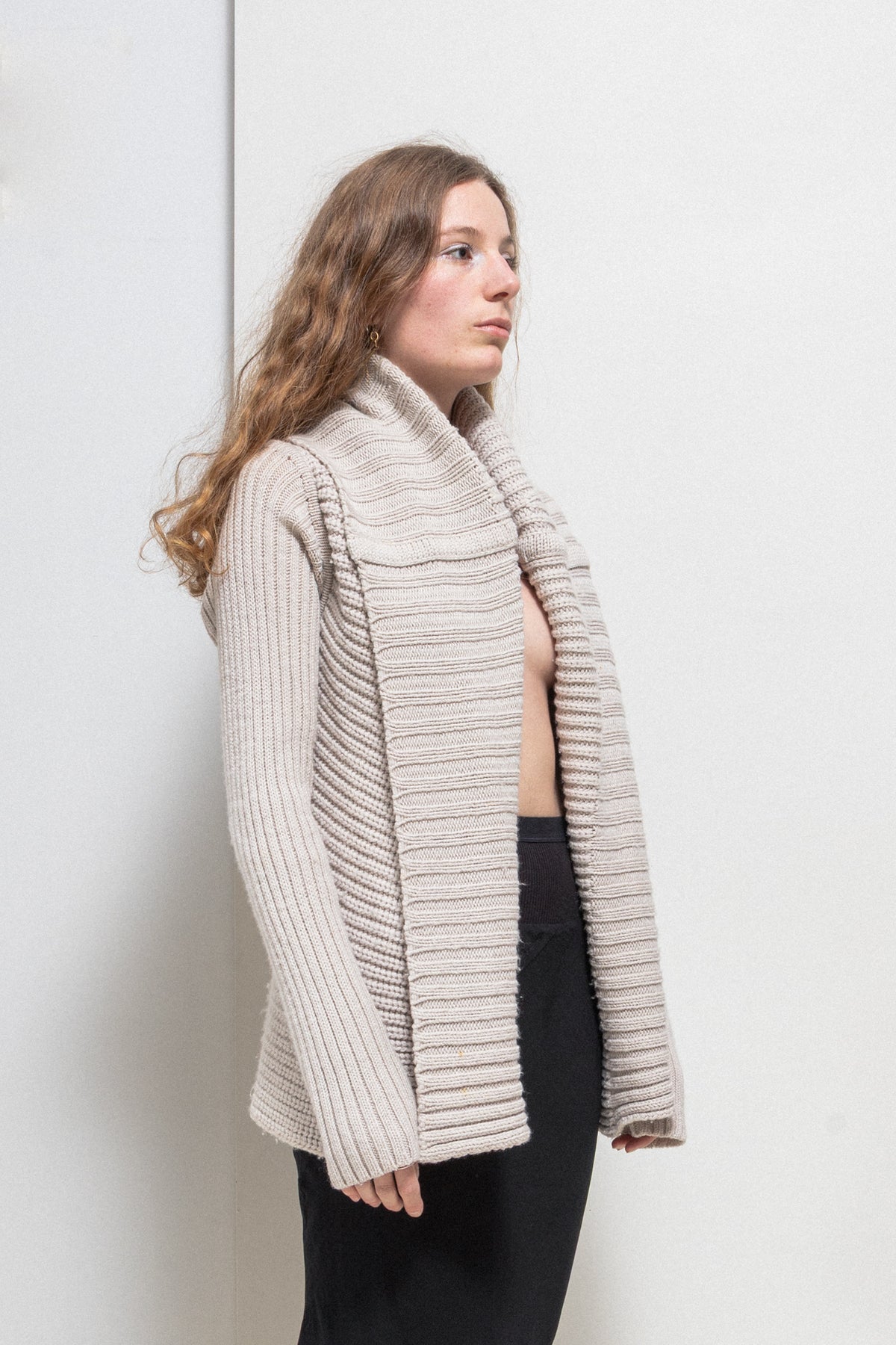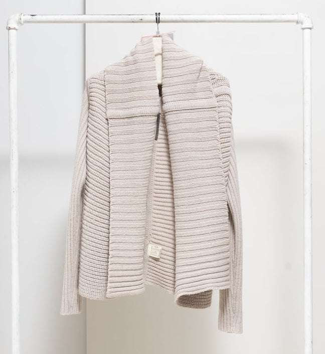 Beautiful cardigan made of a soft and warm extra fine merino wool, featuring a thick ribbed texture and wide lapels that can be folded. Slim and elongated sleeves.