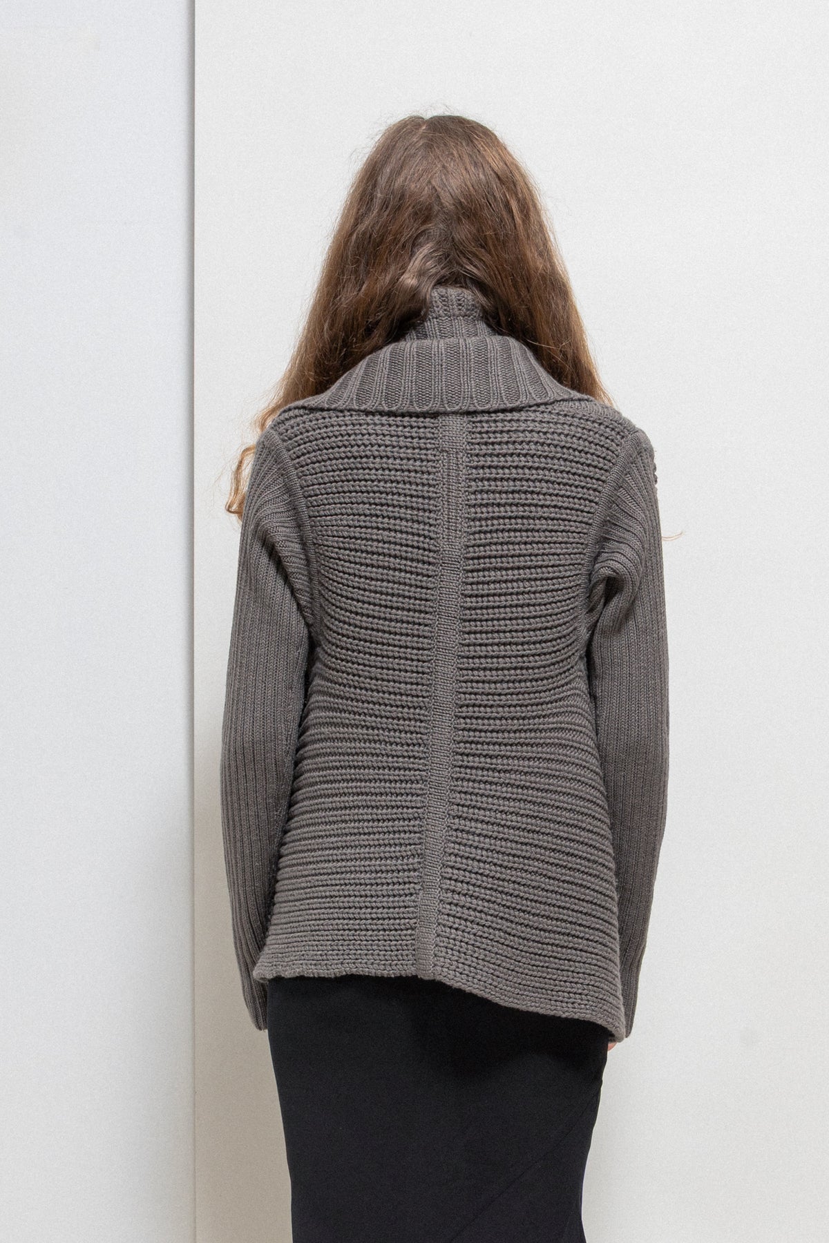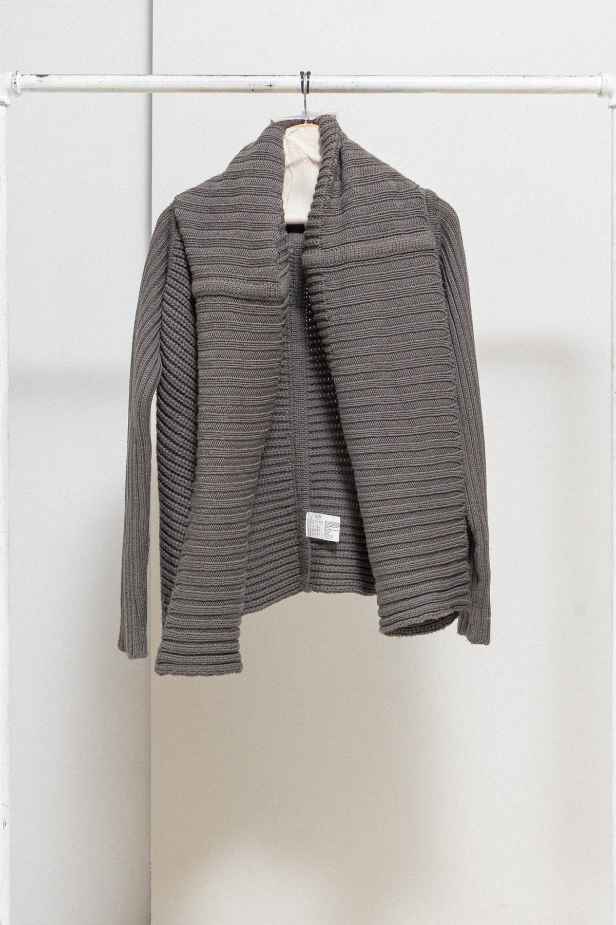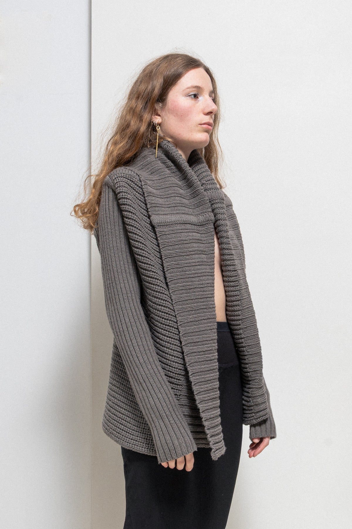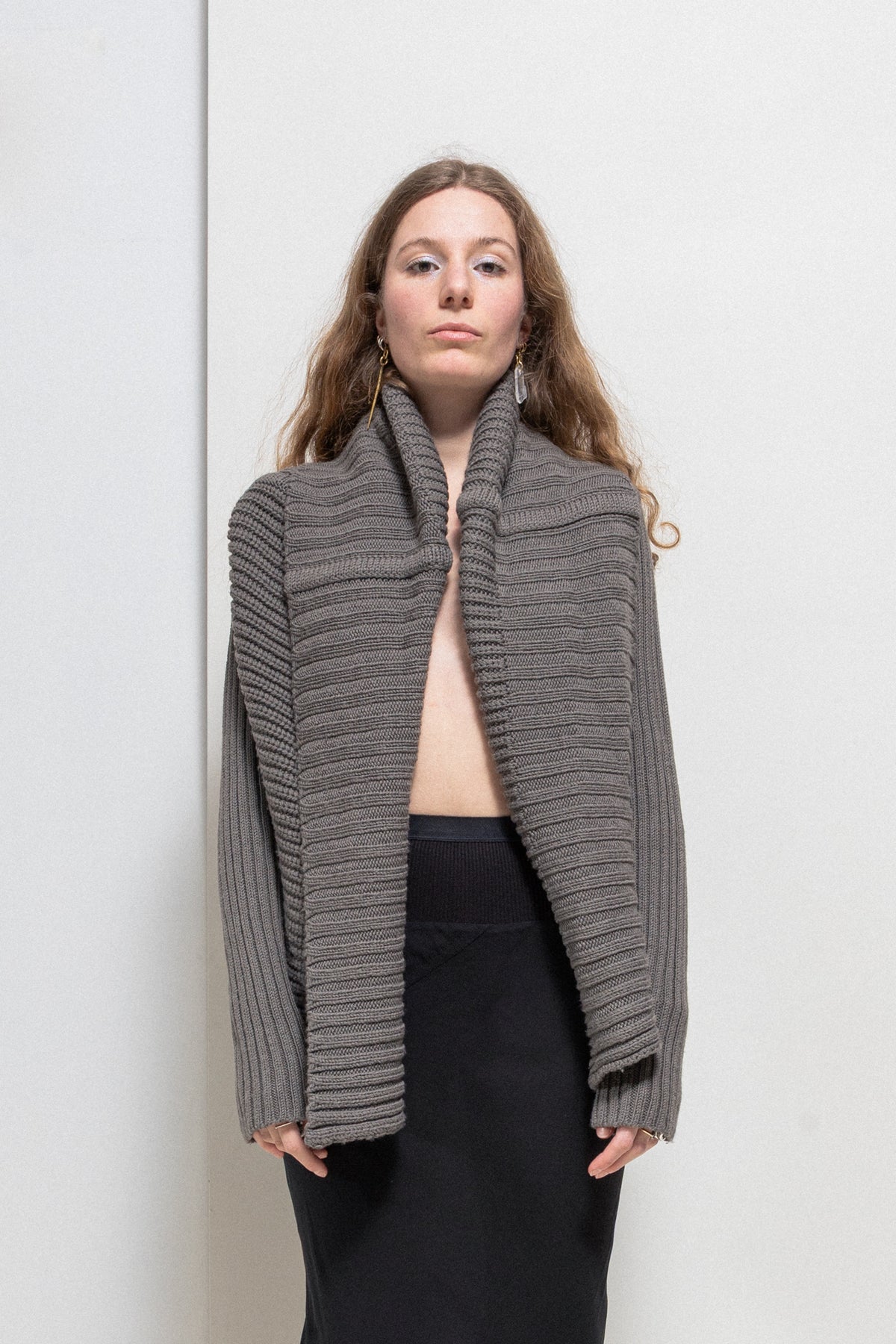 Beautiful cardigan made of a soft and warm extra fine merino wool, featuring a thick ribbed texture and wide lapels that can be folded. Slim and elongated sleeves.