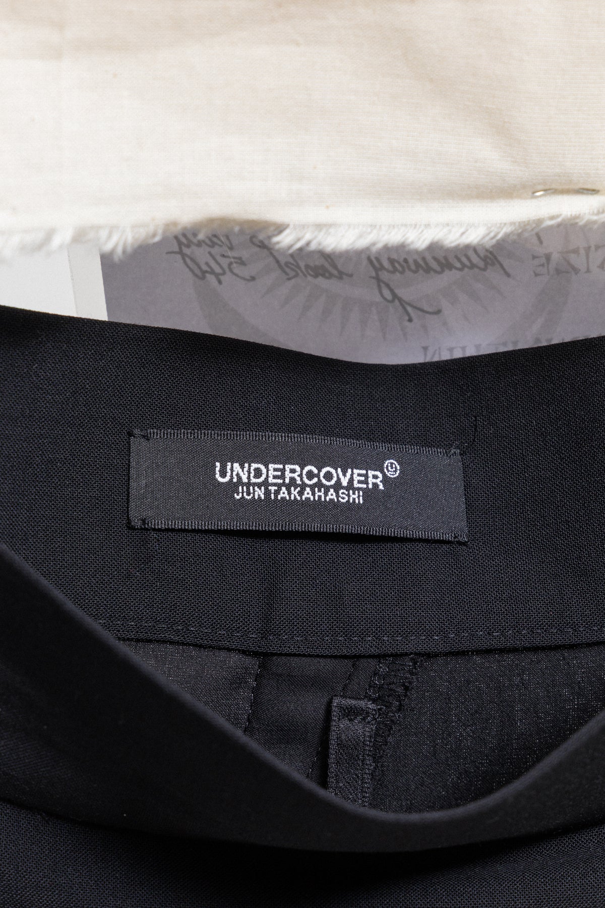 Beautiful long skirt made of soft wool and silk fabrics, featuring a construction of the garment made of spiral seams that creates numerous layers at the bottom stacked on top of each other and detailed by frayed edges. Back closure with two metal staples and an invisible zipper.