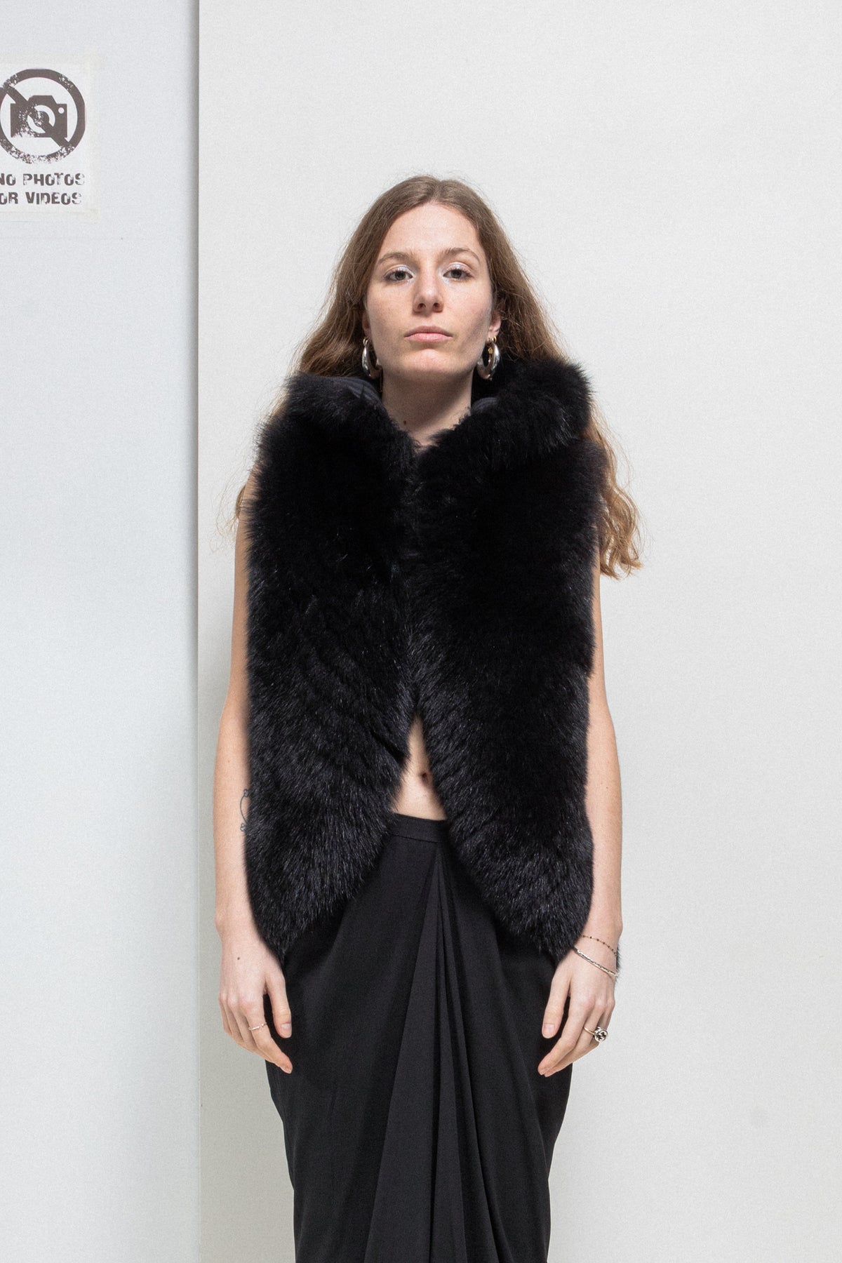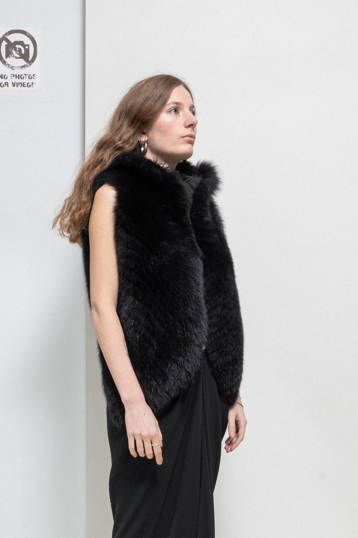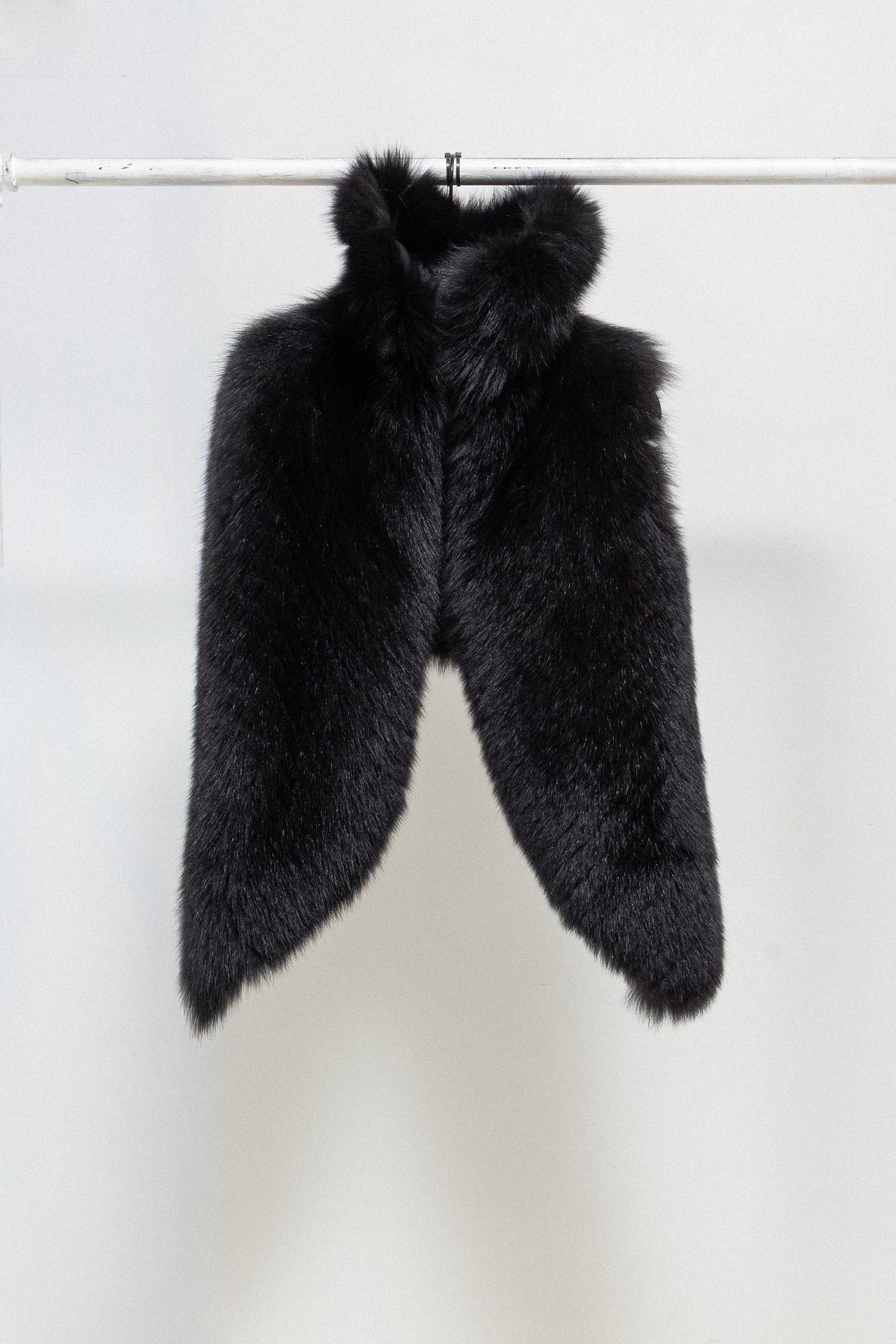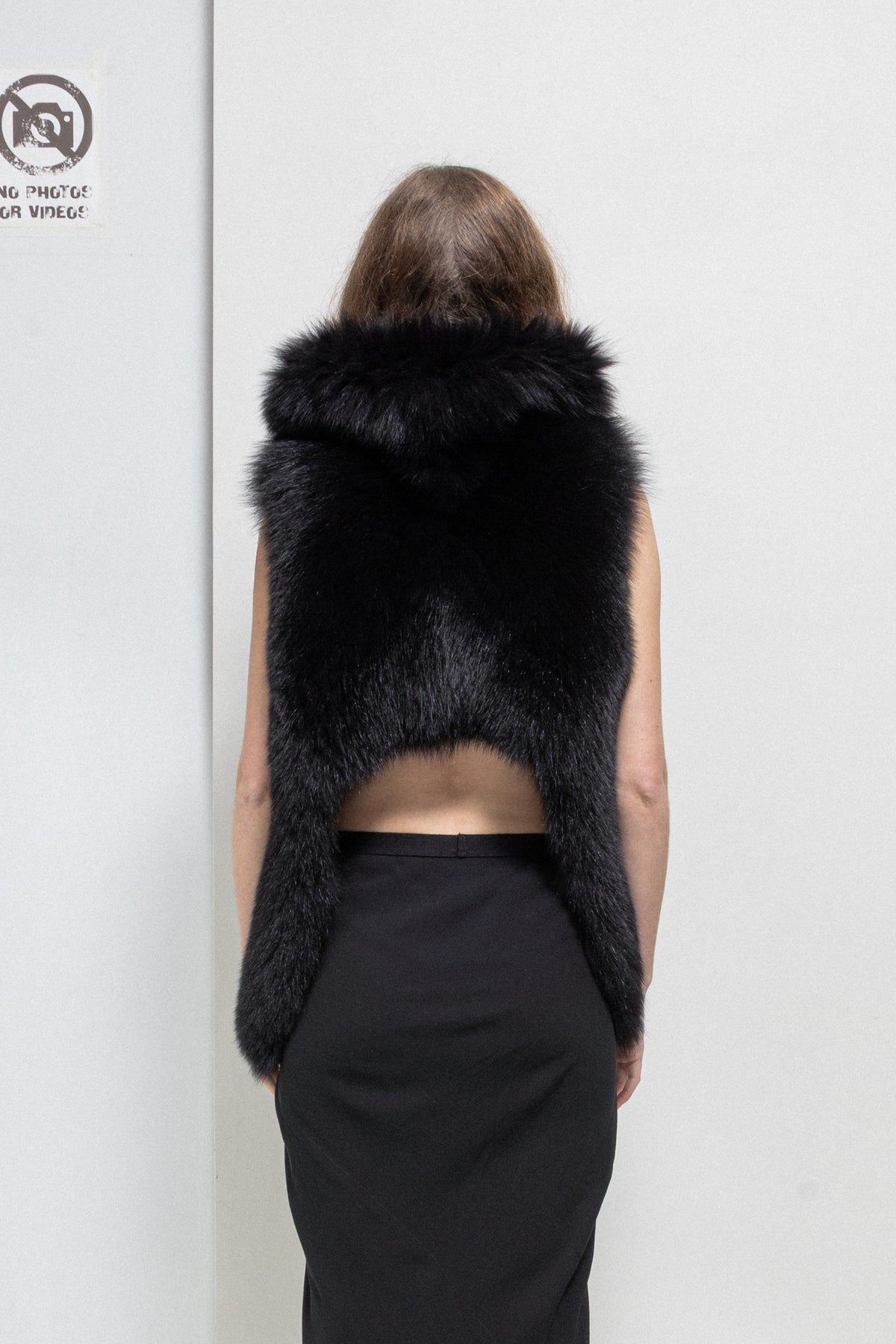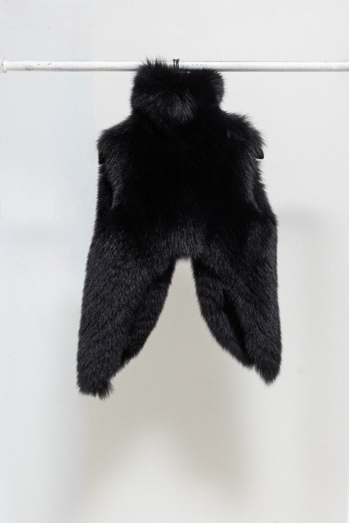 Wonderful vest made of a warm and fuzzy fox fur in an almost black dark brown shade, featuring a high collar and a cropped back with sides following the body. Beautiful panelled lining and Palais Royal plate.